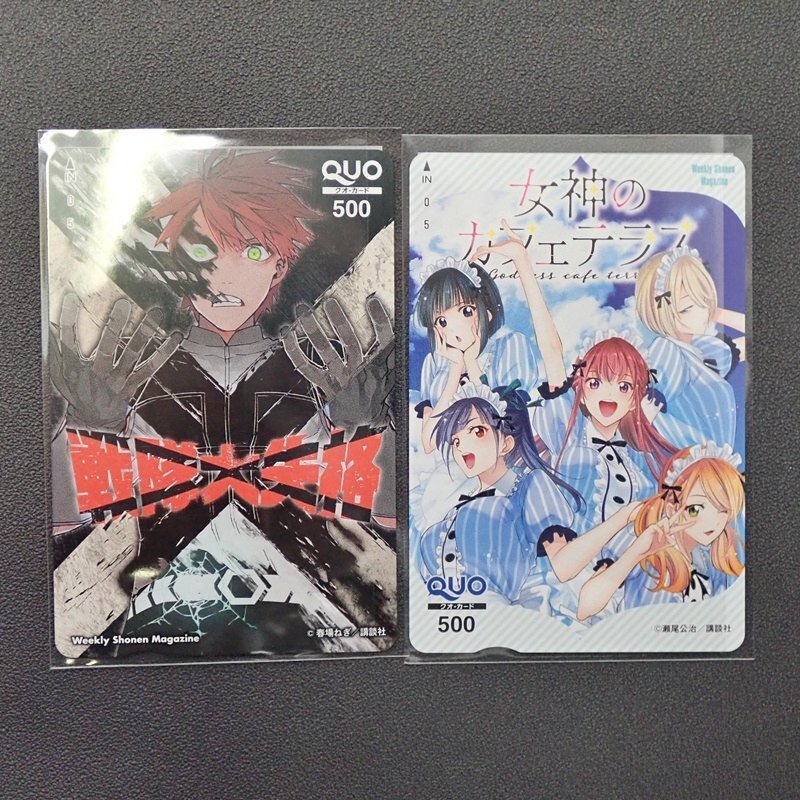 | 商品名 | 【 送料無料 】 クオカード 6000円分 (500円×12枚) 週刊少年マガジン 不滅のあなたへ 女神のカフェテラス 盤上のオリオン あひるの空 他 |
