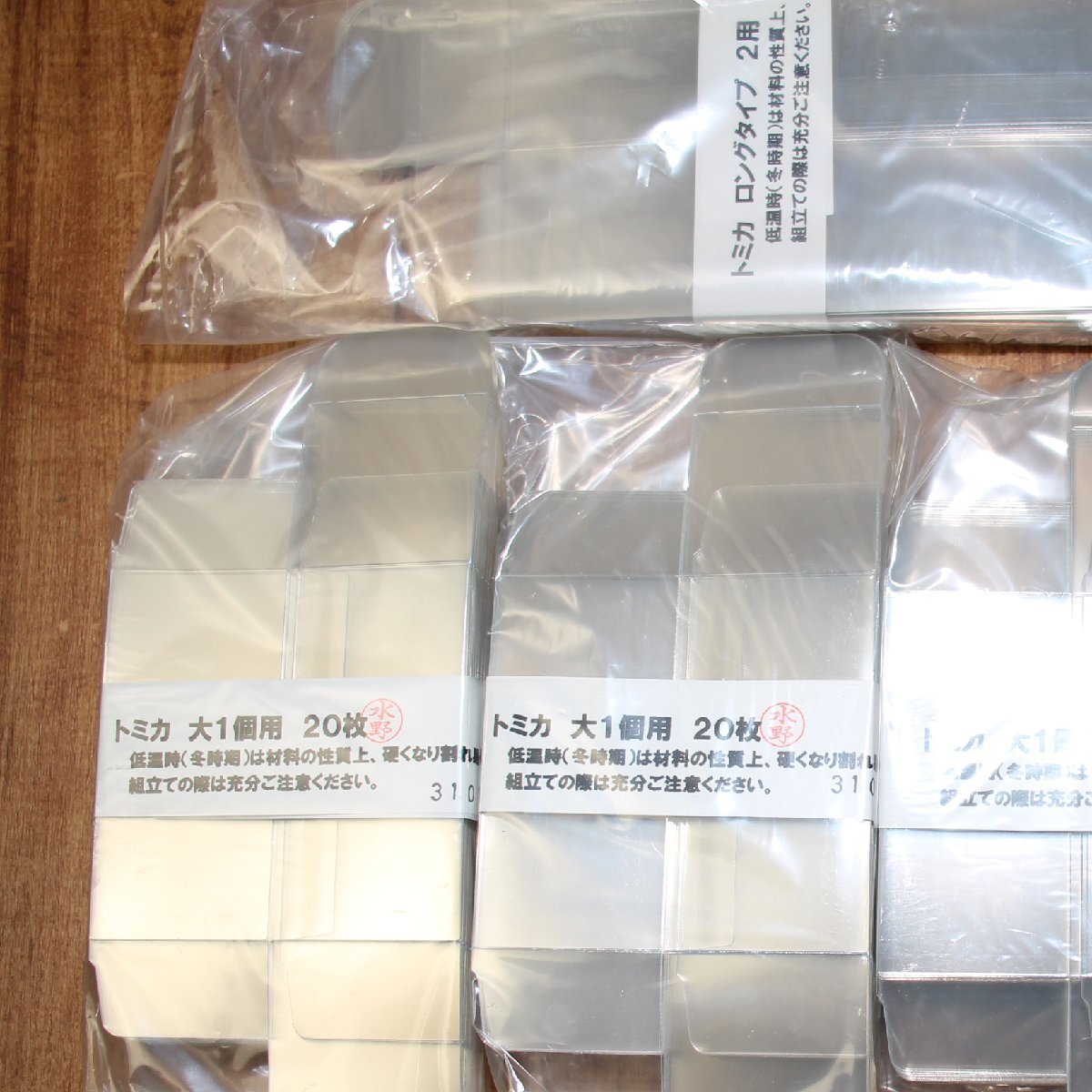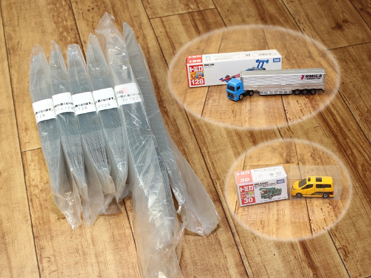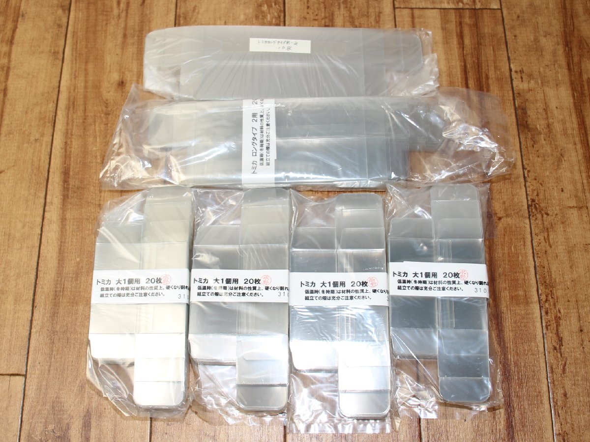 | 未使用保管品です。 トミカの箱が収納できるクリアケースの1パック20枚入りが4パック(全80枚)と、 トミカのロングタイプに対応するクリアケースが30枚です。 (※トミカの製品はイメージですので付属しません) |
