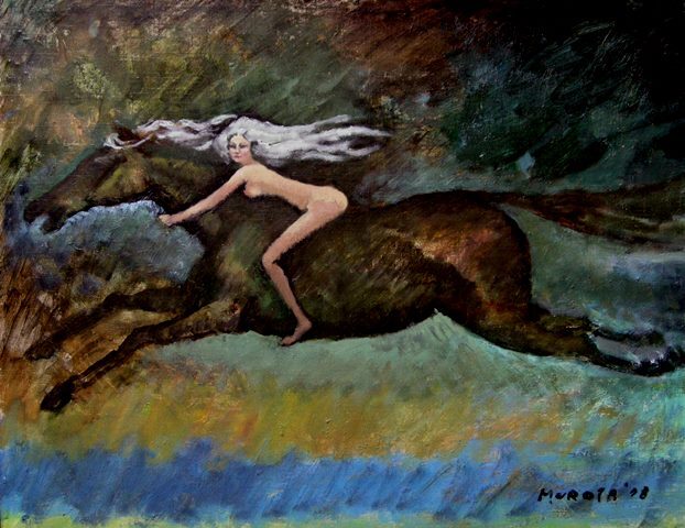 | 「嵐を駆ける」 1978年 室田豊四郎 F10号 カンヴァスボード油彩 肉筆 裏書あり 真作保障 師 猪熊弦一郎、脇田 和 | |