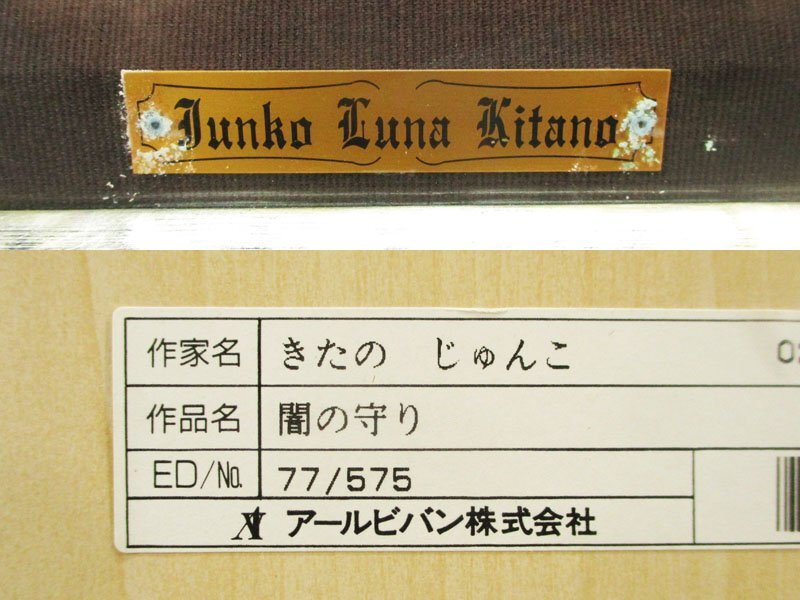 9SR4135T ☆きたのじゅんこ(Junko Kitano) ジークレー 『闇の守り』 額装品 の出品です。 この機会にいかがでしょうか ◆きたのじゅんこ◆ 東京都出身。東京学芸大学教育学部美術科卒業。 天使や妖精・精霊などを繊細なタッチで描くセレスティアル・アートの世界を築いた。 主な作品集として「Angel」「聖なる森の物語」「結晶庭園」(白泉社)、「月の雫」「精霊の国」「夢の中で」(サンリオ)、「12の花物語」「星たちの祈り」「翼の国へ」(小学館)、「天の小舟」(河出書房新社)、「マリヴロンと少女(宮沢賢治/作)」(くもん出版)、「セレスティアル(天上の調べ)」「シルフィード(風の妖精)」ギフトブック「SERAPHIM...愛の天使」(新書館)などがある。 また、赤川次郎、氷室冴子、立原えりか、綾辻行人などベストセラー作家の著作を飾る。 CDジャケット、ポスター、詩、エッセイ、紀行文など多岐に渡り活躍中。 サイズ(約) 額の外寸……縦/101.0×横/75.0センチ マットの内枠……縦/79.5×横/53.5センチ 個人所有・保管のお品物です。作品にシミがみられます(主に上部)。額材にヤケや錆等の経年の傷み、僅かなキズがございます。 ※上記と画像の状態をご理解して頂いた上で入札をお願い致します。現状でのお渡しです ※感じ方に個人差がございますので、些細な所まで気になさる方や、完全美品をお探しの方は入札を御遠慮下さい |