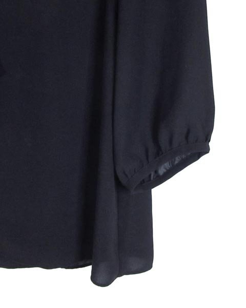 | 上品なデザインのブラウス。お袖部分は少しだけ透けるデザイン。身頃部分は2枚重ねなので、透け感はありません。ビジネスシーンからオフの日まで幅広くお使い頂けます。 |