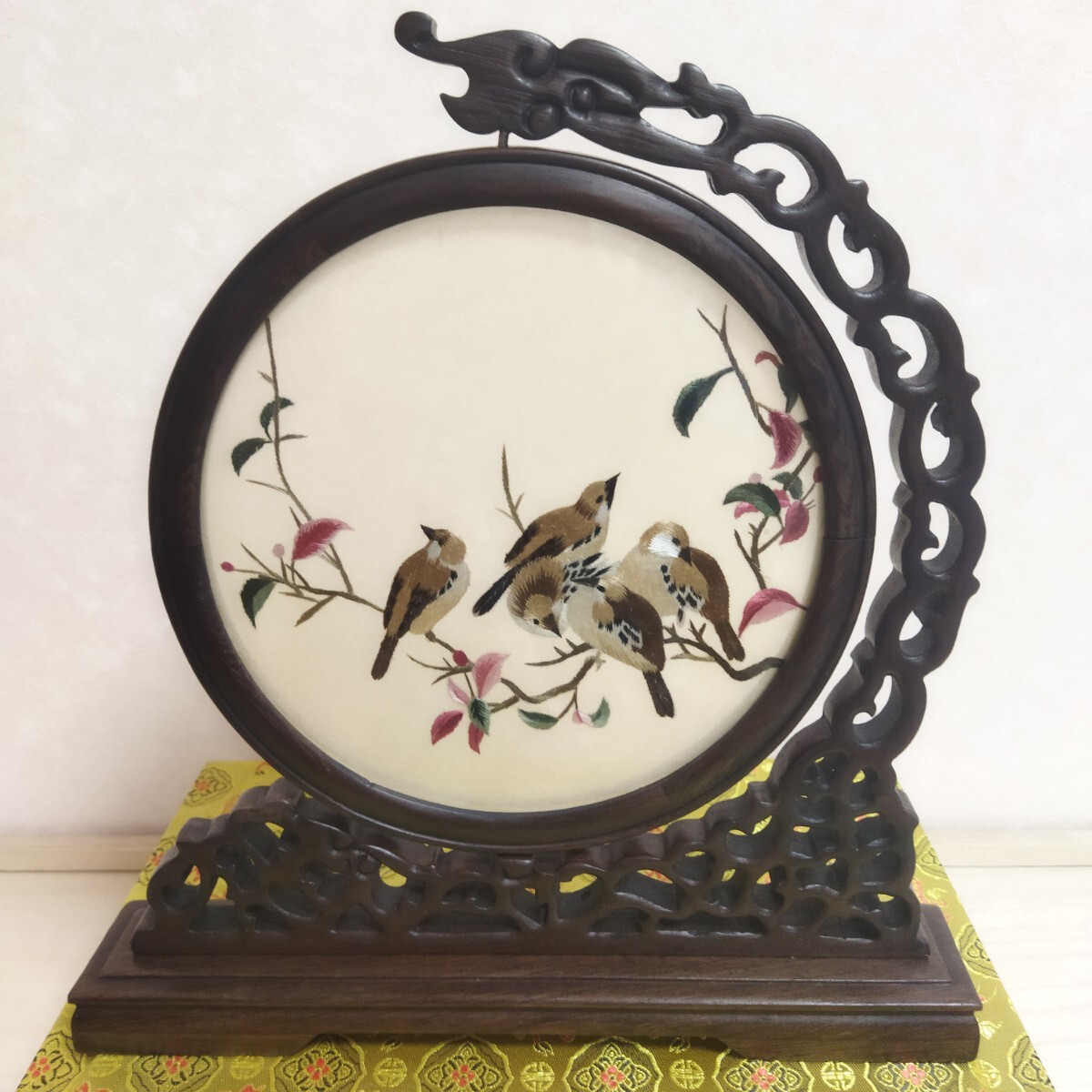 | ※ 中国美術 工芸品 刺繍 すずめ スズメ 雀 鳥 インテリア 置物 化粧箱入り ※ | |||