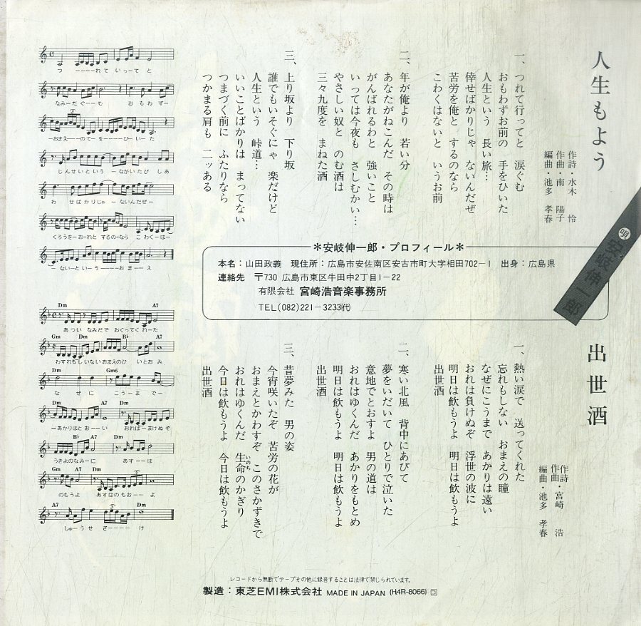 C00202337/EP/安岐伸一郎「人生もよう / 出世酒 (H4R-8066・自主制作盤・東芝EMI製造・宮崎浩音楽事務所)」