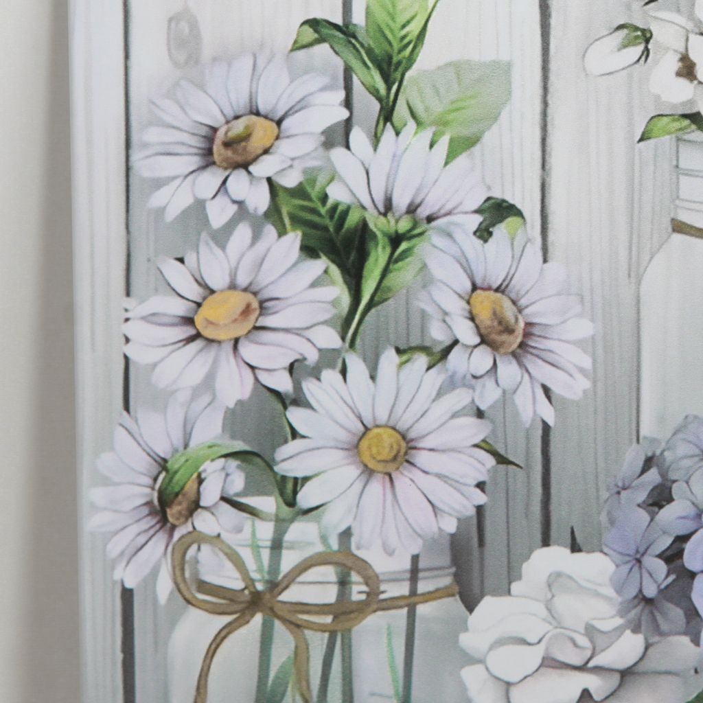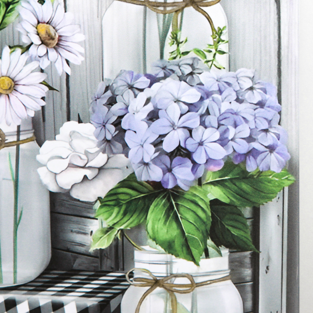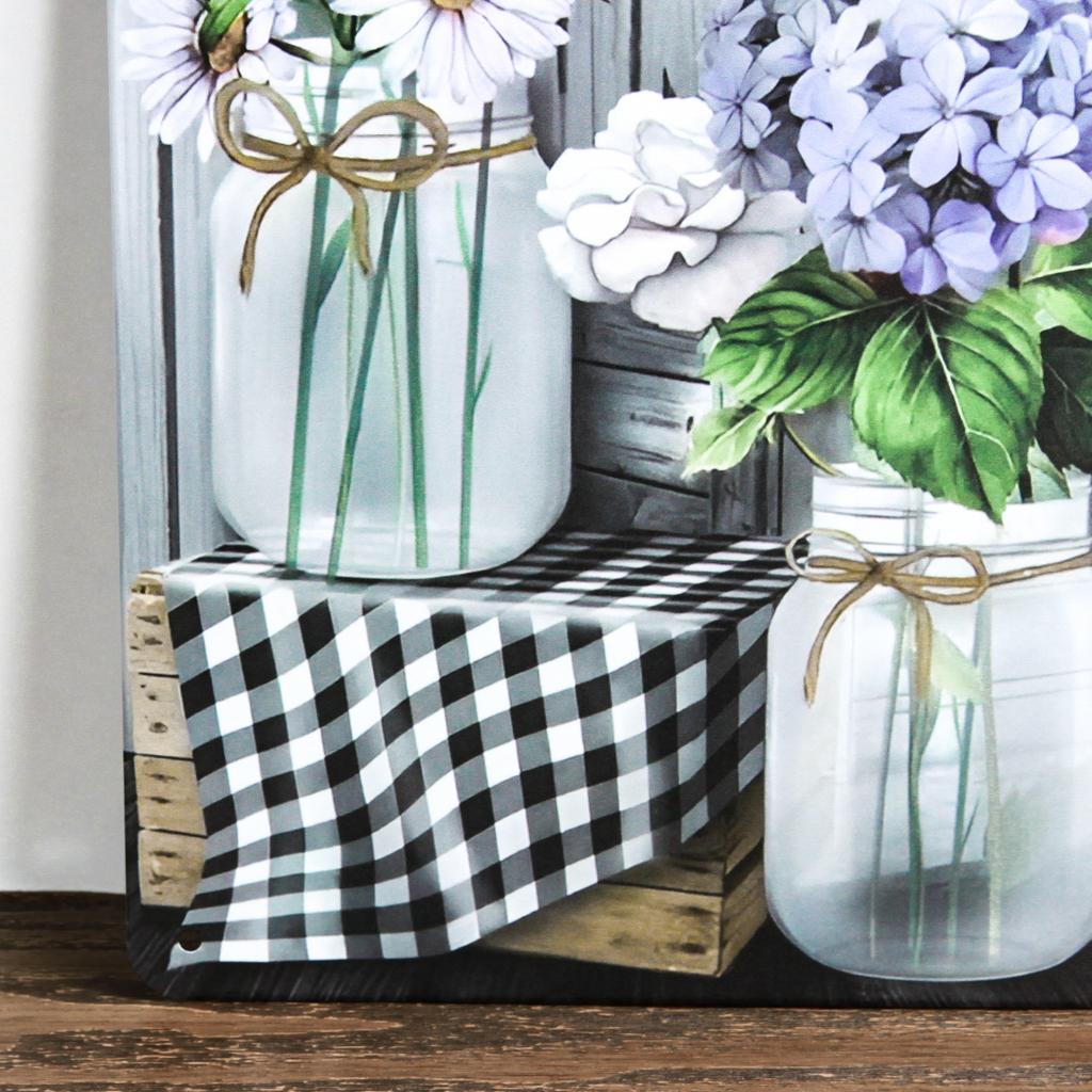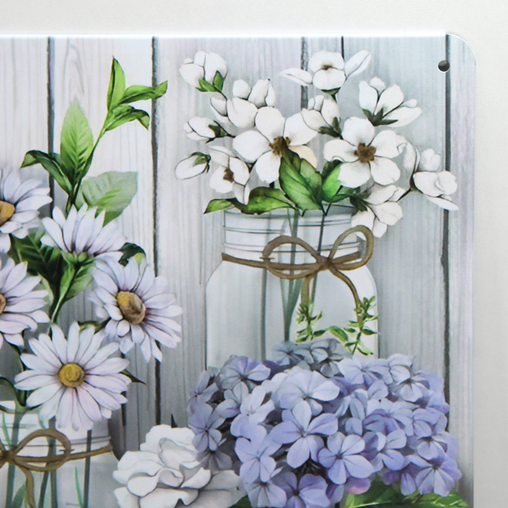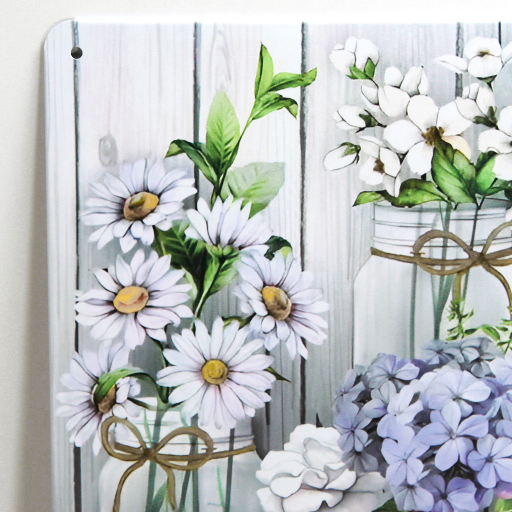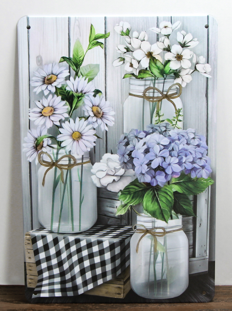 ☆花々と透明な瓶のボタニカルな絵のブリキ看板です。
