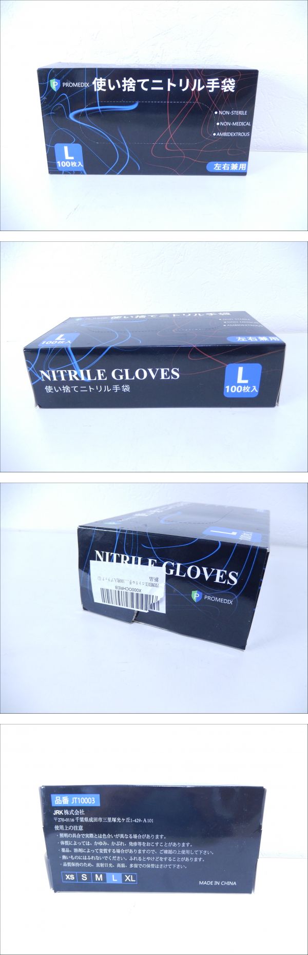 | 【管KO0820】500円~ 未使用 PROMEDIX 使い捨て ニトリル手袋 ブラック 左右兼用 L 100枚入 | ||