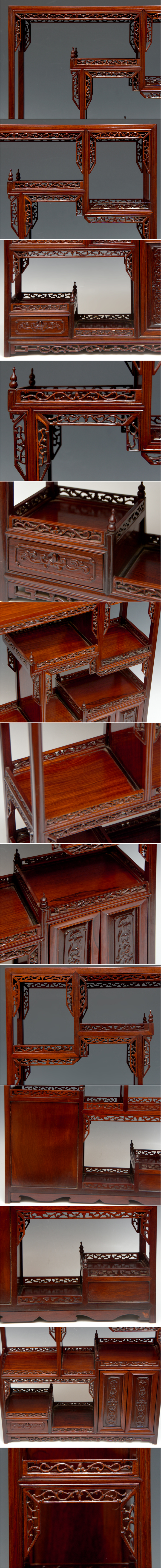 中国美術 唐木 紫檀 透かし彫り 違棚 高さ52㎝ 横幅41㎝ 飾り棚 木工芸 ミニチュア家具 飾台 天然木 |
