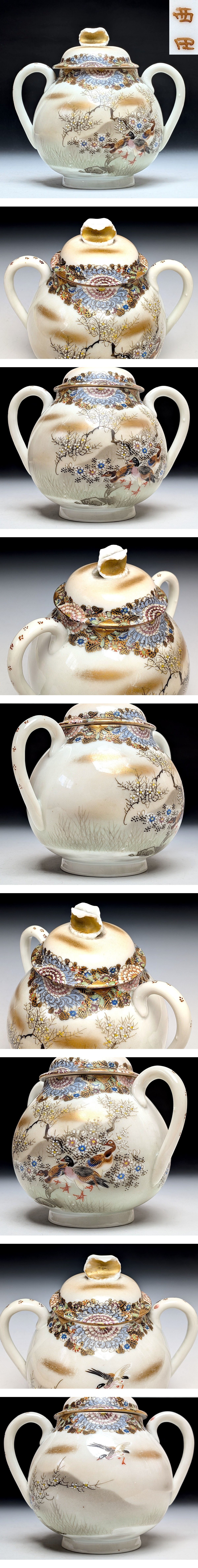 | オールドニッポン 西田 金彩 鴛鴦文 梅樹図 蓋物 | ||||