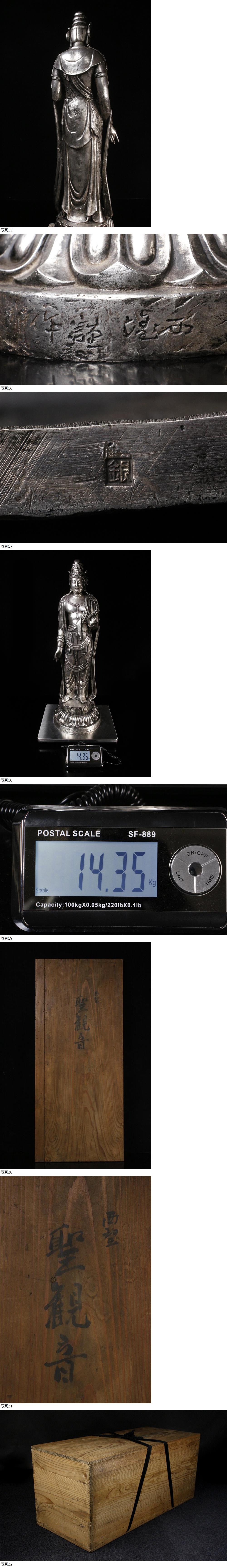 25122307* * * 商品詳細 * * * ここでしか出逢うことのできない唯一の美をご紹介させて頂きます。 柔和で温かみのある佇まい、内に強い芯を秘める迫力ある姿をした 聖観世音菩薩像のご紹介です。 北村西望ならではの有機的で柔らかさのある表現で、 心地よい温度感を感じるような造形が魅力的です。 どこか艶っぽくも貫禄があり、メリハリの効いた輝きが迫力を一層強めます。 78㎝、14kgもの大きさと重量感は見応えがございます。 この機会に是非お求めください。 作家略歴 彫刻家。長崎県に生まれる。 1907年(明治40)京都市立美術工芸学校彫刻科を卒業、 翌年第2回文展に初入選。 さらに東京美術学校彫刻科に学び、1912年に卒業、 1915年(大正4)第9回文展で『怒濤(どとう)』が二等賞、 第10回文展で『晩鐘』が特選となった。 1919年以来帝国美術院展覧会審査員、 1921~1944年東京美術学校教授。1925年帝国美術院会員となり、 官展系彫刻に指導的な役割を果たした。 1958年(昭和33)文化勲章を受け、その後日本彫塑会名誉会長を務める。 代表作に『長崎市原爆中心地建立平和祈念神像』(1955)などがある。 ■商品内容/観音像、時代箱 ■サイズ/横25cm×縦78cm×奥行25㎝ 箱:横81.5cm×高36.5cm×奥行35.5㎝ 重量:14.35kg ■状態/スレ、傷、変色、 箱にスレ、傷、腐食、割れ、欠け、シミ、焼けがございます。 ※写真にてご確認、ご了承の上ご入札下さい。 銀刻印がありますが銀の成分を保証するものではありません。 ご理解の上ご入札ください。 * * * 支払詳細 * * * !かんたん決済 * * * 発送詳細 * * * 入金確認後3営業日以内に発送致します。 ※直接引き取りも可能です。 60~160サイズにつきましては 佐川急便、ゆうパックのどちらかで発送いたします。 ゆうパック発送の場合、弊社の発送日から追跡サービスに問合せ番号が反映されるまで 約1日ほどお時間がかかりますのでご了承下さい。 * * * 注意事項 * * * 運送中の破損があった場合は速やかに当社までご連絡下さい。 保険を利用するのに受取連絡後に運送会社による現場での破損状況確認が必要となります。 勝手に返送されますと保険の適用外となりますのでご注意ください。 * * * * * * お問い合わせ:082-236-8669 |