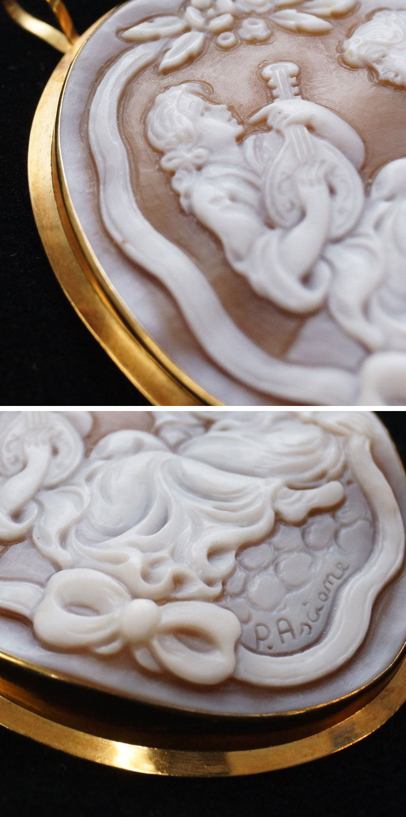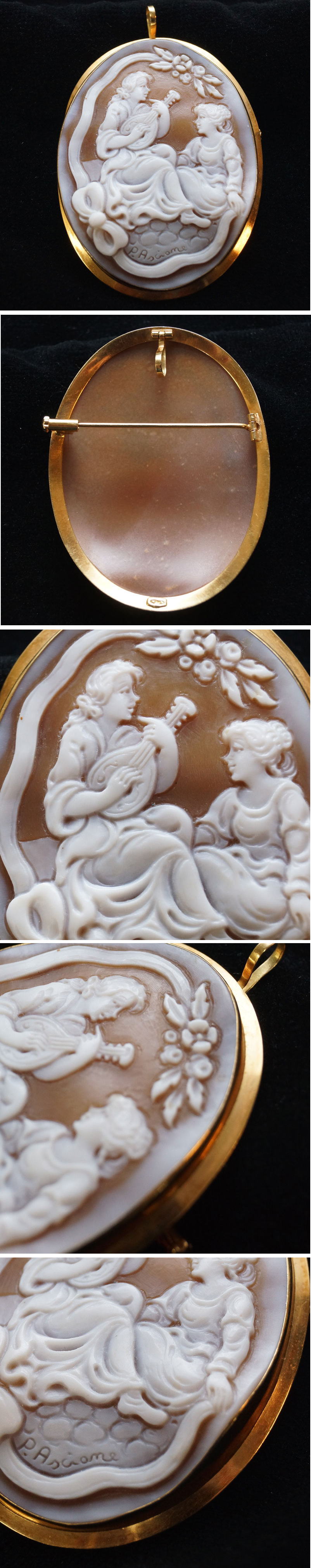 カメオ ブローチ 750刻印 サイン有 41×53㎜ 12.31g 女性 ペンダントトップ K18 金 ヴィンテージ-837