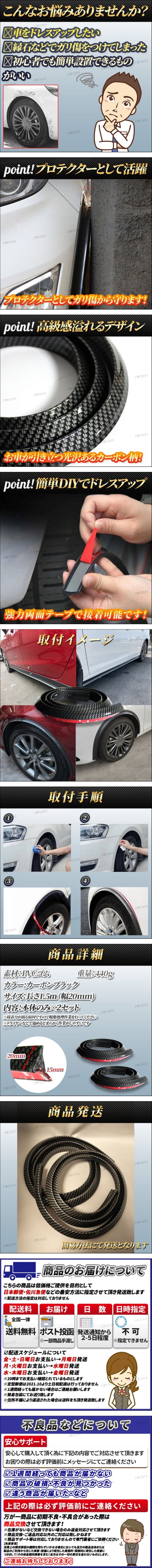 | フェンダーアーチモール フェンダー リップモール 汎用 アーチモール オーバーフェンダー カーボン調 黒 ドレスアップ ゴム 1.5m 2本 | |||