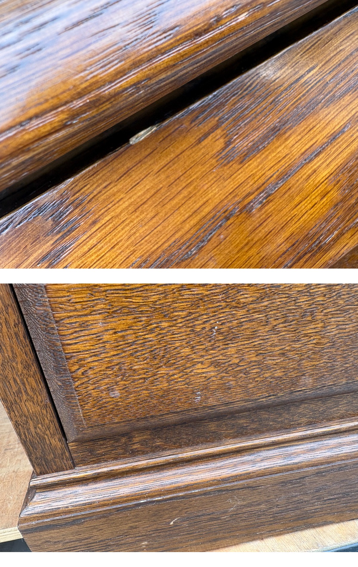 簡易清掃は行っておりますが、長期保管品の為引き出し内や細かい箇所の埃等は取りきれていないかもしれません。