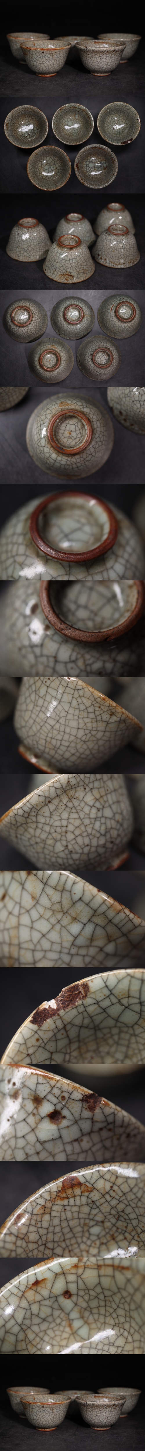 | 時代 青磁 氷裂紋 煎茶碗 五客 / 中国美術 茶器 煎茶道具 検索: 官窯 龍泉窯 相馬焼 .G3884 |