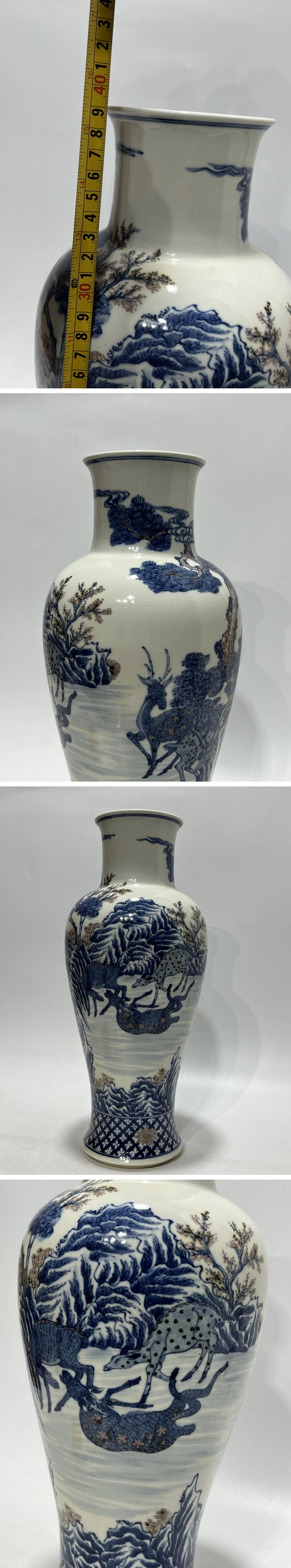 【清】関西某オークション購入 中国伝来 清時代物 大清乾隆年製 染付き 山水紋花瓶 当時物 時代コレクション8L1-TG
