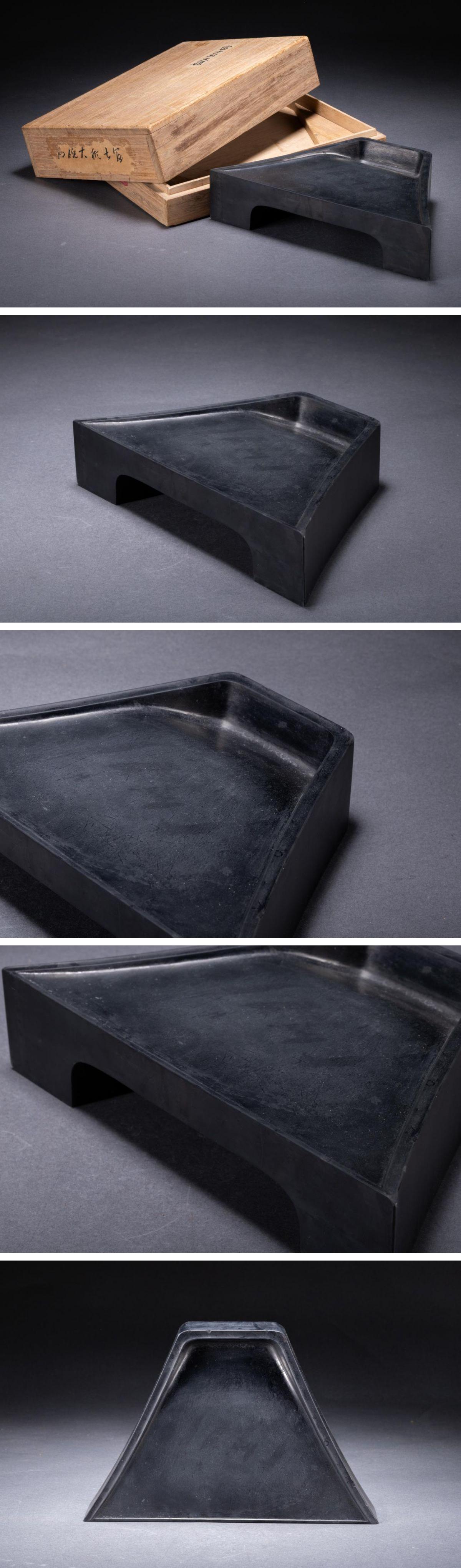 【華】某有名収集家買取品 時代物 古石 富士形大硯 共箱 書道具 古美術 骨董品A25090301-QW