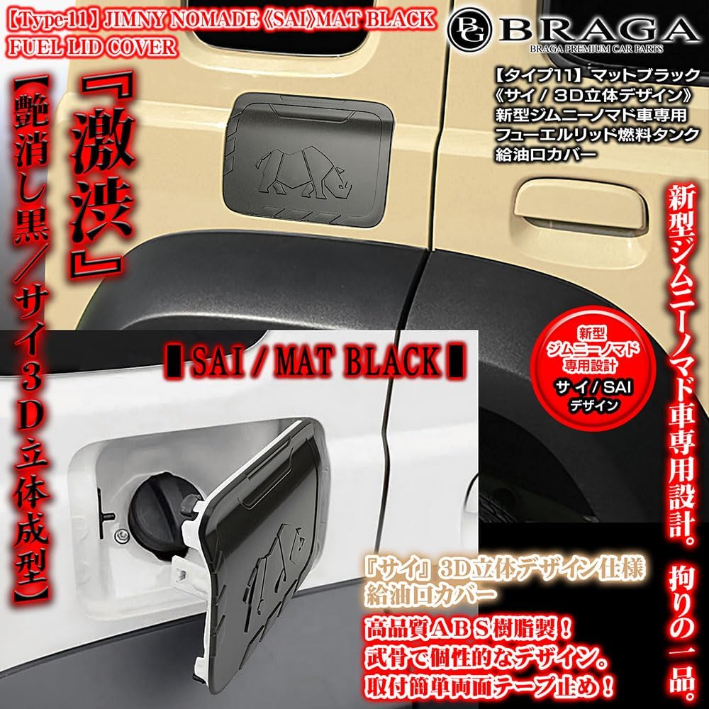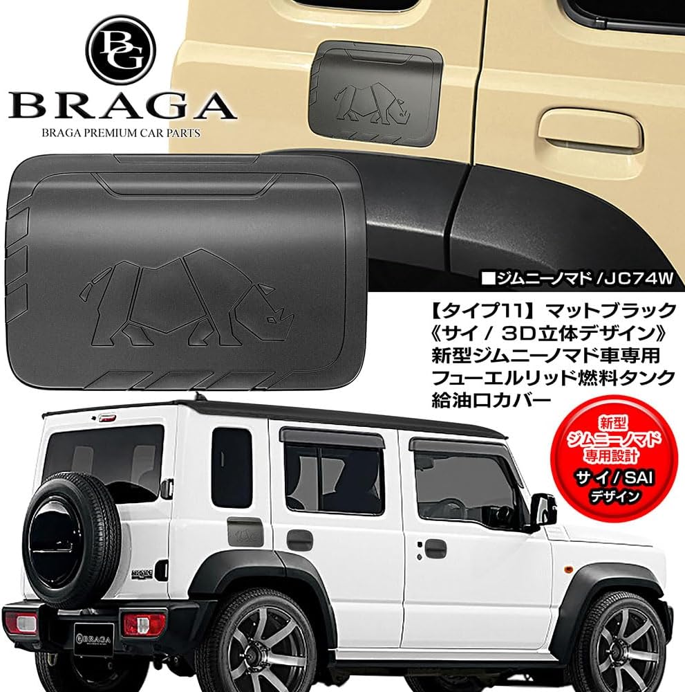 【サイ 3Dデザイン】JC74Wノマド車用《タイプ11》マットブラック/ABS樹脂製/フューエルリッド 燃料タンク 給油口 カバー/強力両面テープ付/ブラガ