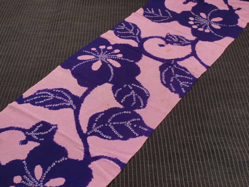 【古布】鹿子唐花草文 縮緬 はぎれ ハギレ 152×33 TAJI06019風楽 |