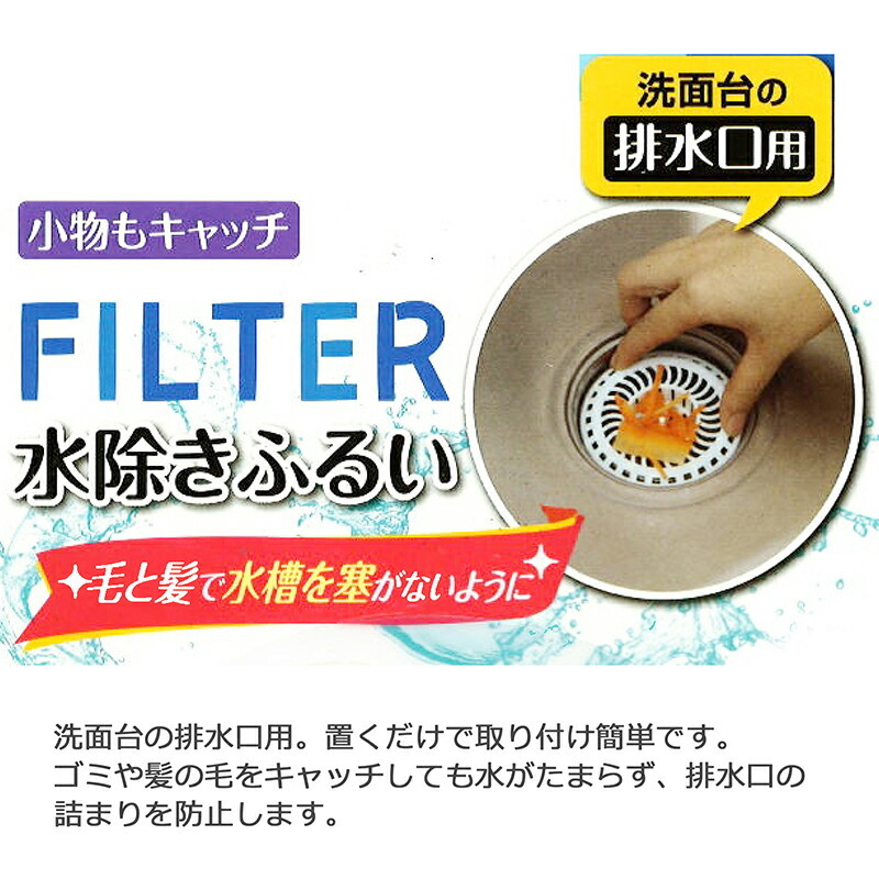 洗面台の排水口用。置くだけで取り付け簡単です。ゴミや髪の毛をキャッチしても水がたまらず、排水口の詰まりを防止します。