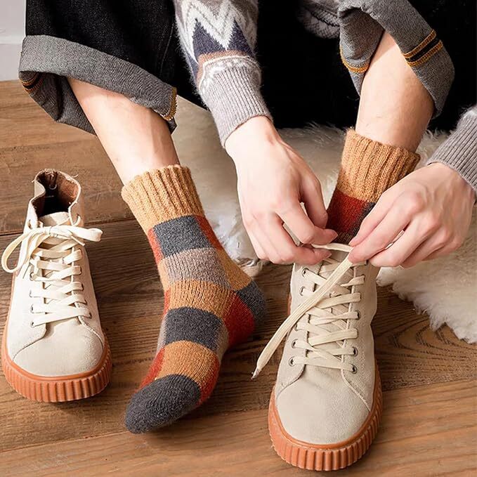 靴下 メンズ 冬 暖かい 厚手 ウールソックス おしゃれ 保温 こたつ靴下 男性 くつした メンズ 冬用 ルームソックス 室内 裏起毛 あったか靴下 アウトドア 防寒くつ下 24-27cm カラフル5足セット