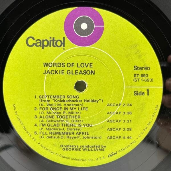 | artist JACKIE GLEASON title Words Of Love label Capitol / ST-693 year 1971 format LP |