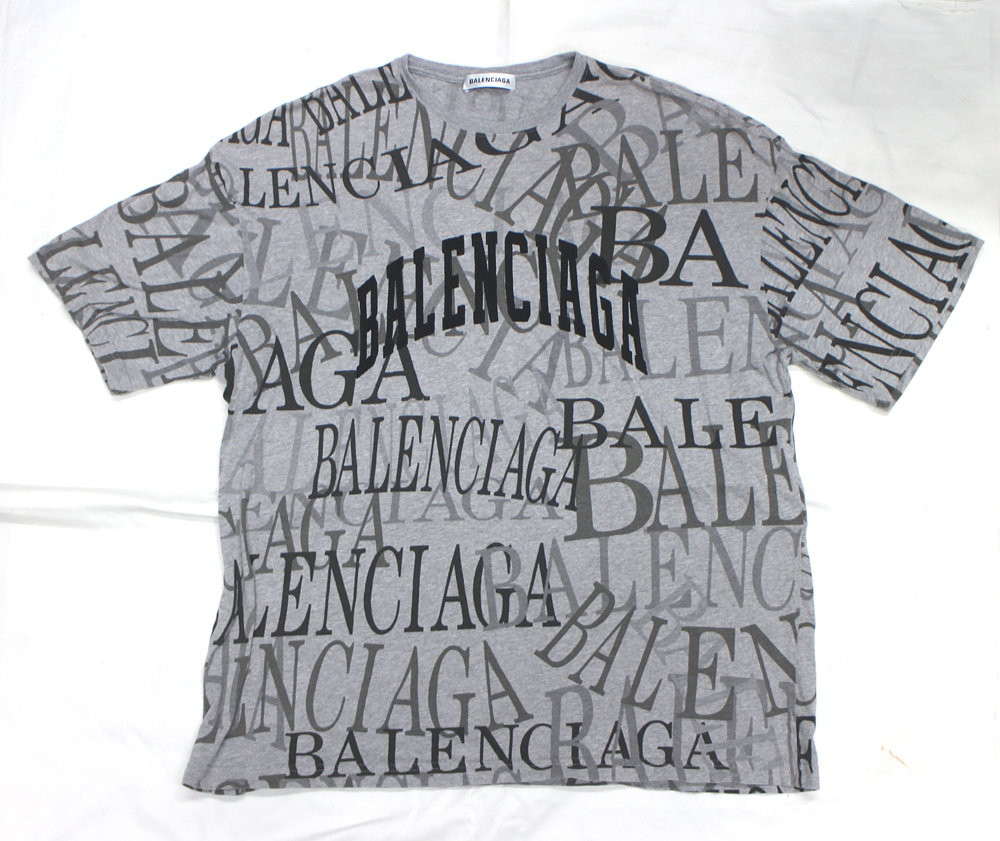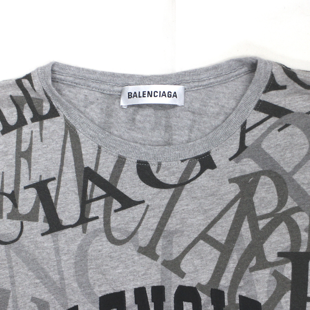 【BALENCIAGA】バレンシアガ 19AW BB Logo Tee ロゴ刺繍プリントTシャツ グレー S オーバーサイズ