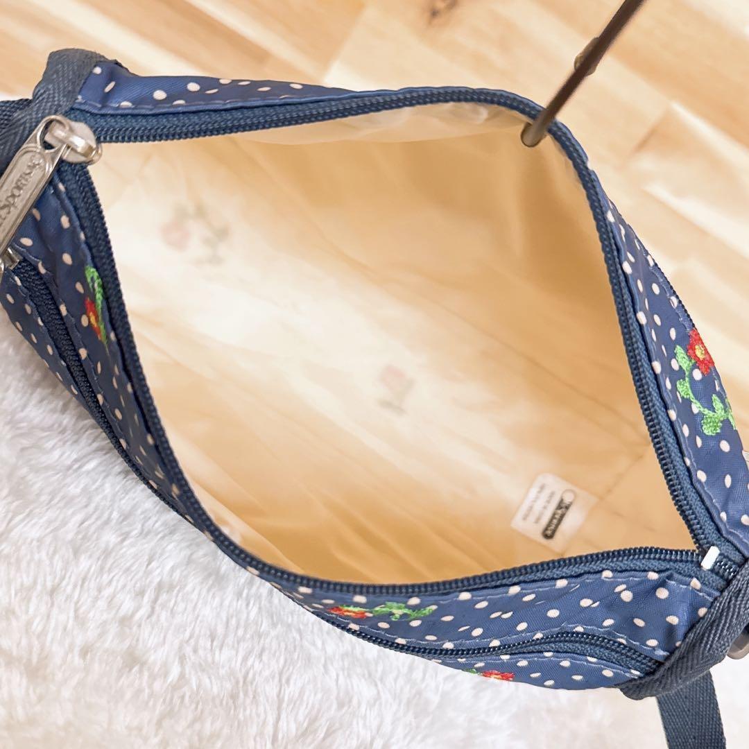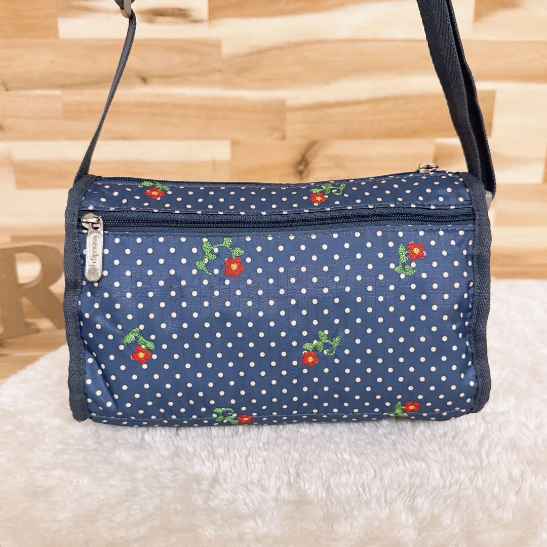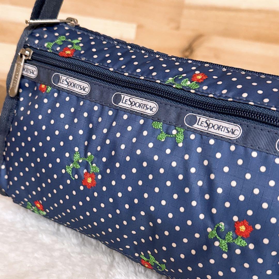 軽くて持ち運びにも嬉しいナイロン素材。小さなドット柄とお花の刺繍が愛らしく映える大人かわいいデザイン。少しレトロな雰囲気でカジュアルスタイルにもほっこり馴染むLeSportsacのショルダーバッグです。