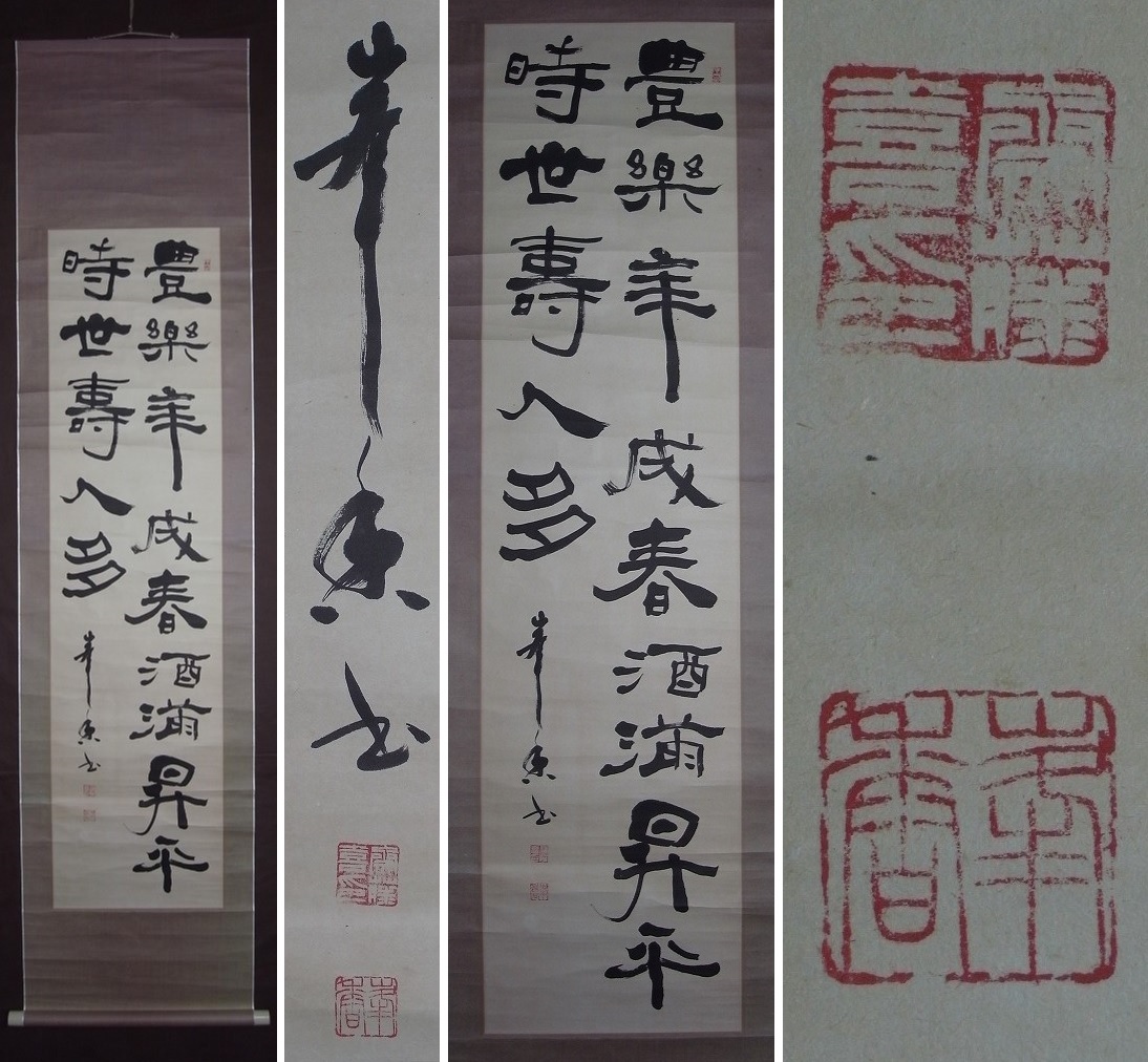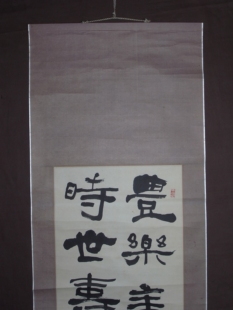 ◇出品物紹介斎藤喜一(号:峯香)『豊楽年成春酒満昇平時世壽人多』掛軸〔紙本肉筆真作〕でございます。