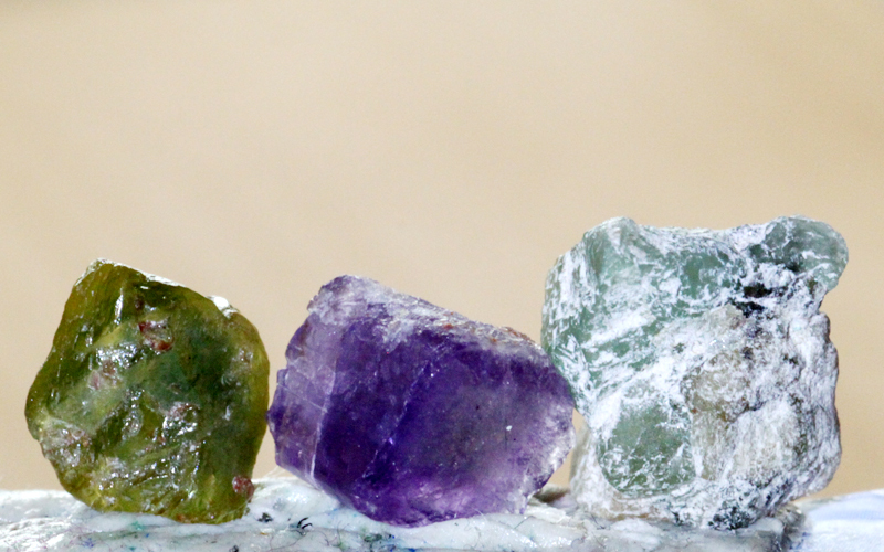 | 天然グランディディエライト、スカポライト、グリーンサファイア原石セット | |||||