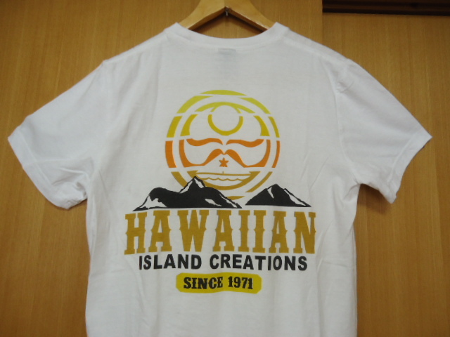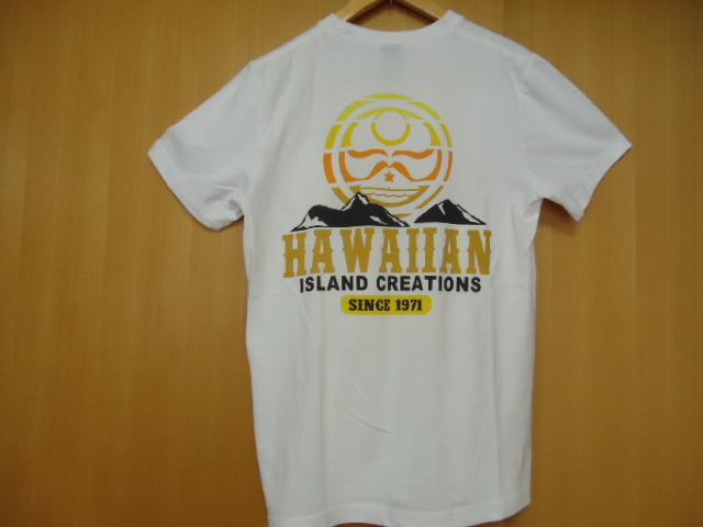 ハワイにて、古着として、購入しました。コットン60%・ポリエステル40%混合素材なので、伸縮性あります。Hawaiian Island Creation社製。カラーは、白色です。中国製。クリーニング済み。サイズ表示は、Mですが、平置き実寸を重視して下さい。なお、少々誤差は、ご了承下さい。肩幅約41センチ・身幅(脇の下)約45センチ・丈約70センチです。少々薄汚れ(4・7枚目画像)あります。USED物なので、古着に、ご理解のある方・24時間以内に、お手続き入力後、期限内にかんたん決済、出来る方のみ、ご入札をお願い致します。この商品は、1点物です。