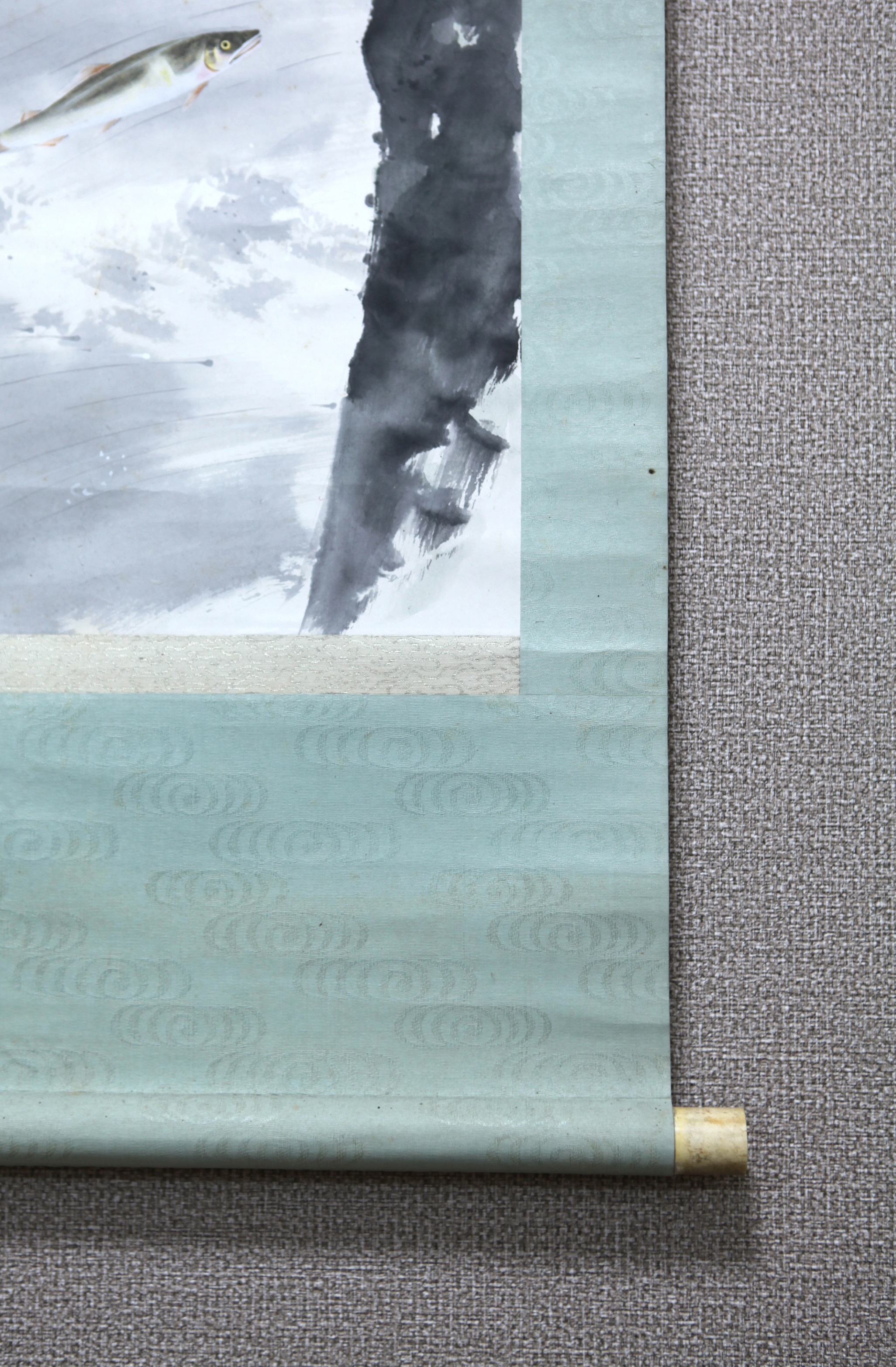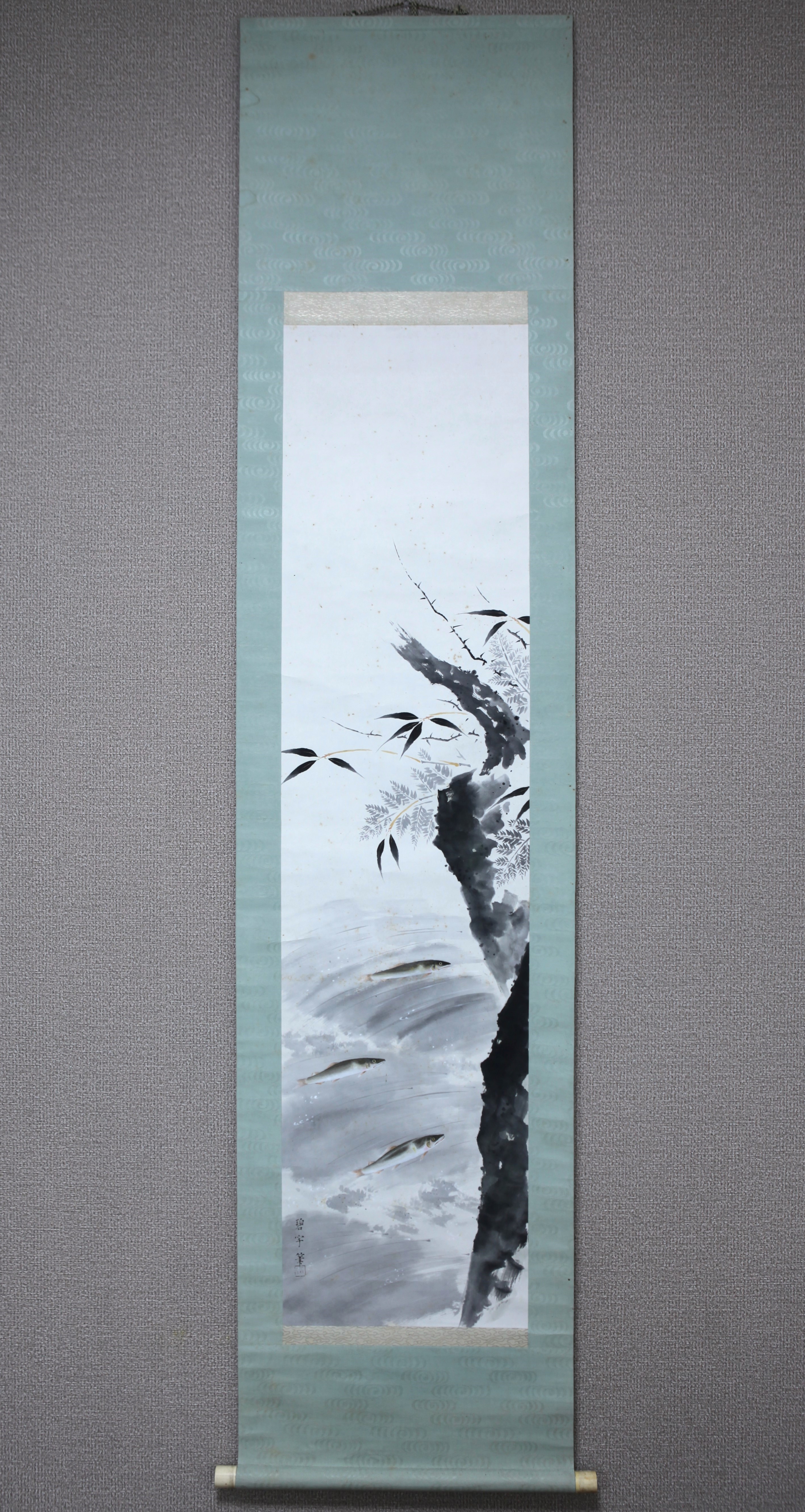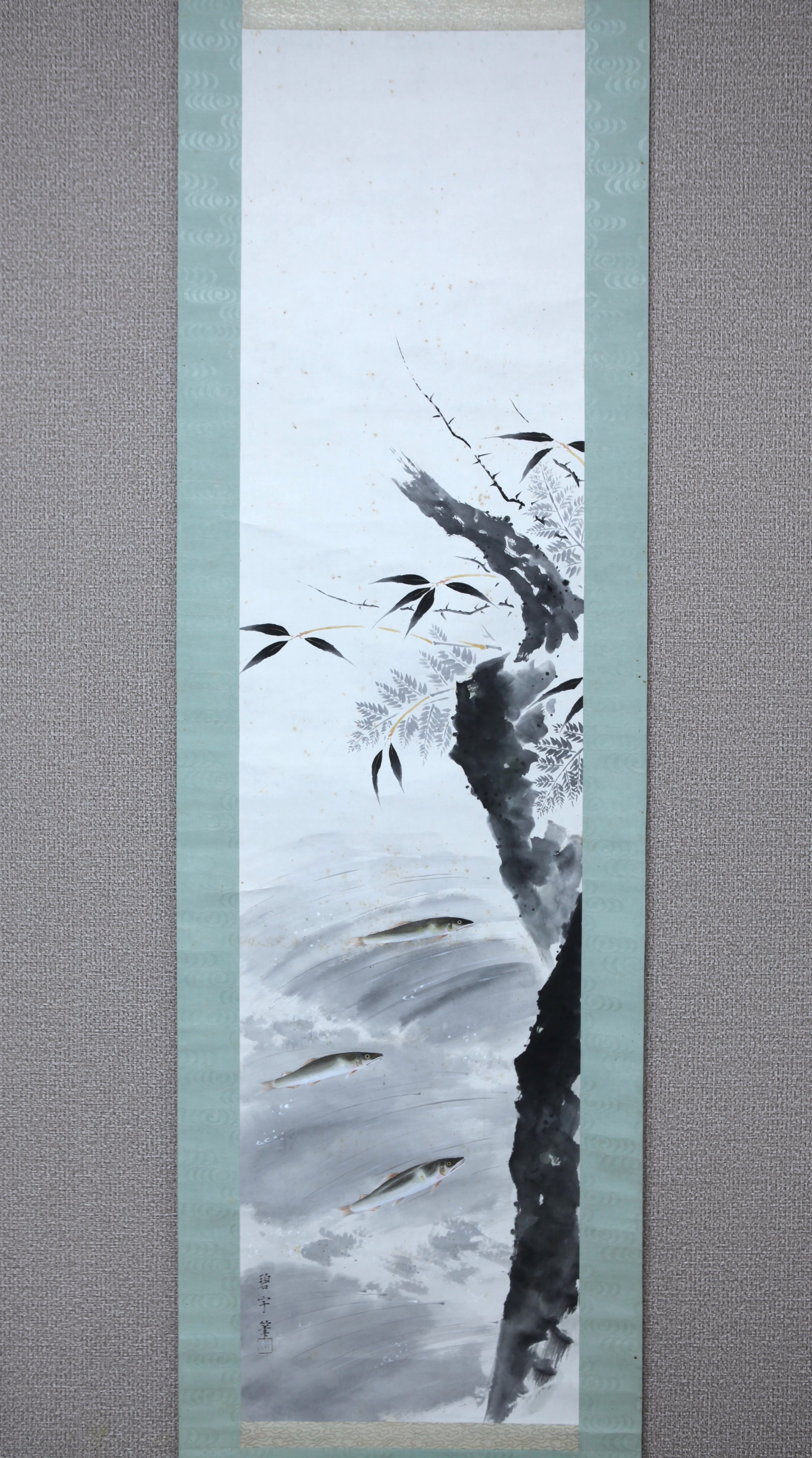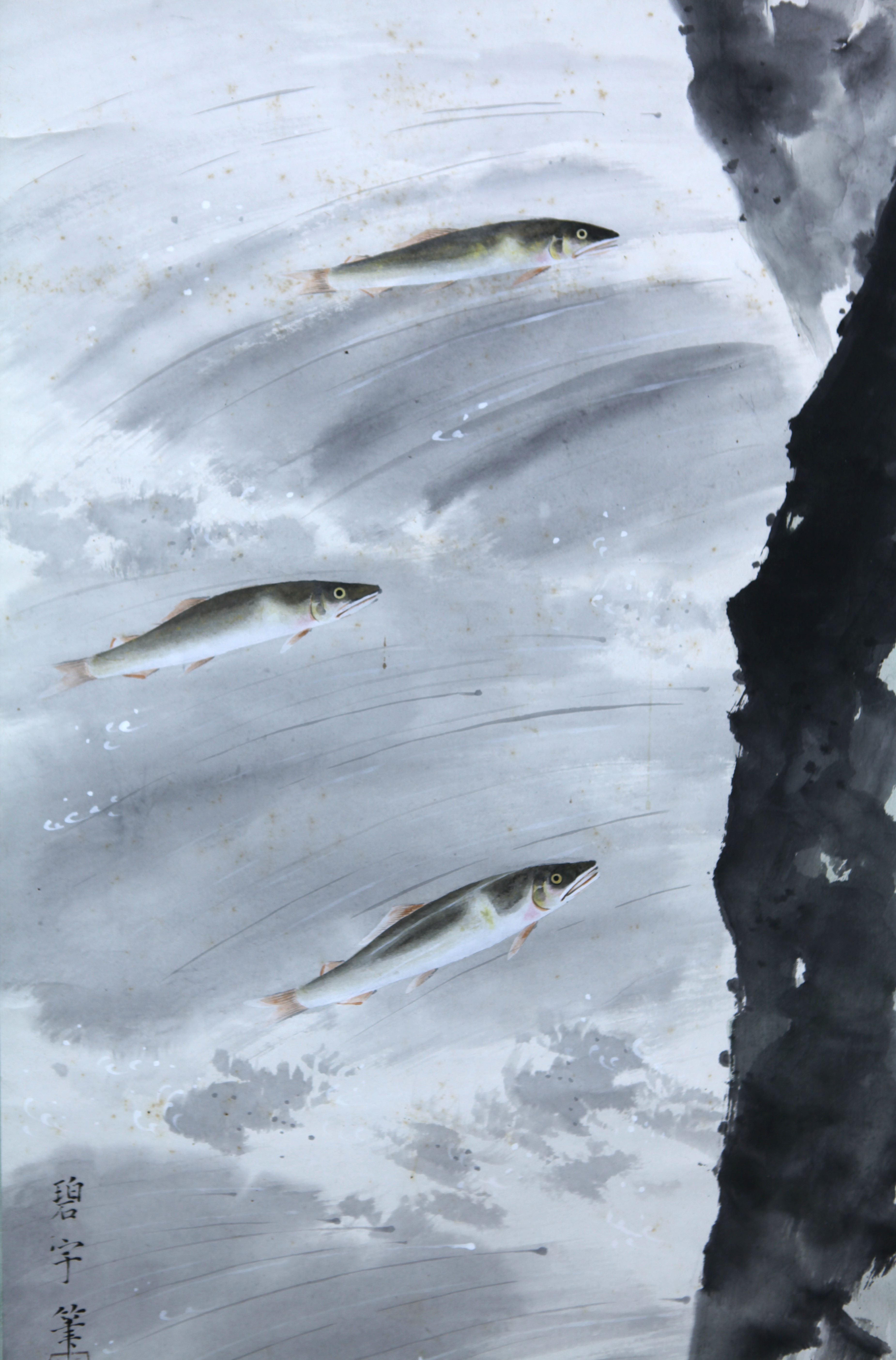 | 【真作】【風車】 我妻碧宇 「渓流鮎図」◎肉筆紙本◎山形の人 中村岳陵師事 院展 文展受賞 日展評議員 | ||||||||||||||||||||