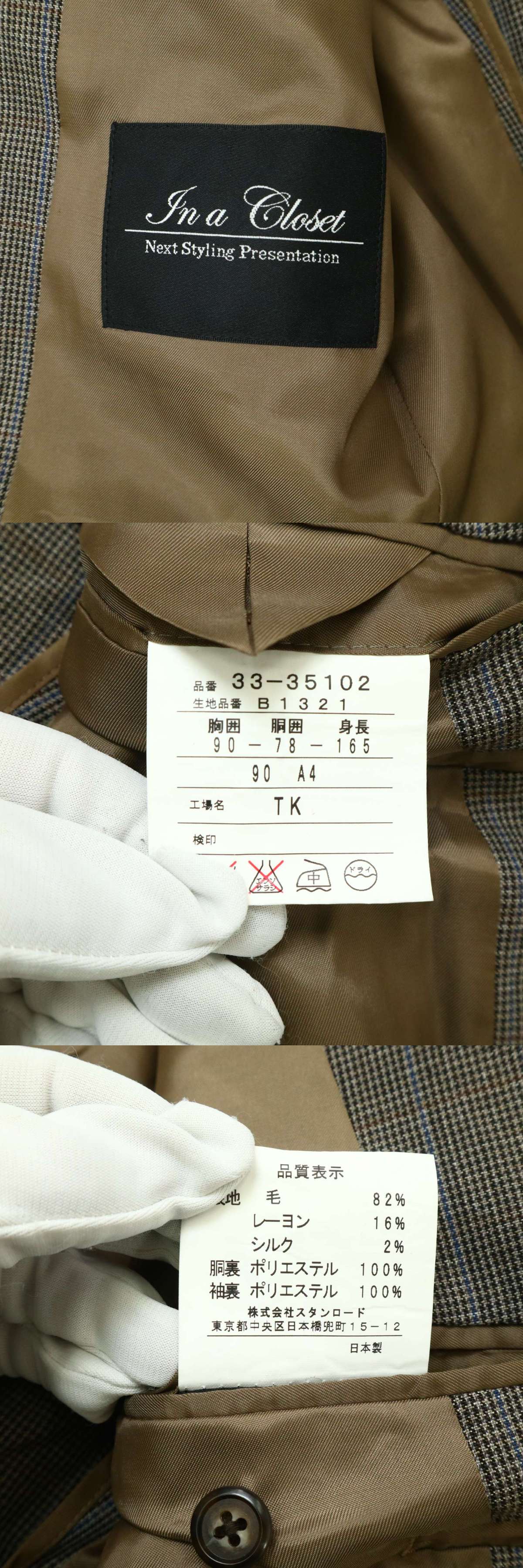 In a Closet イン・ア・クローゼット 春夏 背抜き シルク混★ チェック テーラード ジャケット Sz.90A4 メンズ 日本製