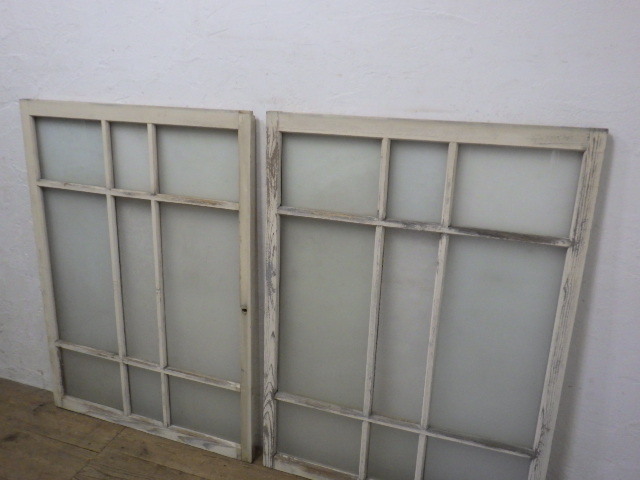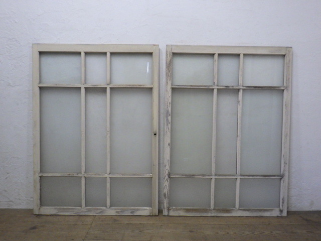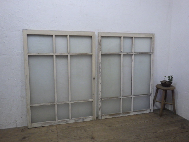 商品情報 | ■商品詳細■ アンティークの古い木枠ガラス戸、2枚セットです。 シャビーシックな味わいのある品です。 ガラスは、ダイヤガラスと曇りガラスを使用しています。 一般のご家庭はもちろん、レトロな店舗什器にもお勧めです。 経年の傷や欠け、染み等がありますが、使用には問題ありません。 ガラスにヒビや割れはありません。 古い塗装のため、配送中に多少剥がれることがありますので、予めご了承下さい。 古い物とご理解いただければ幸いです。 ご不明な点などありましたら、質問欄にてお願いします。 ■サイズ■ 全体(最大値) (H 120cm×W 88cm×D 3cm)×2枚 竪框 4cm 多少の誤差はご了承下さい。 |