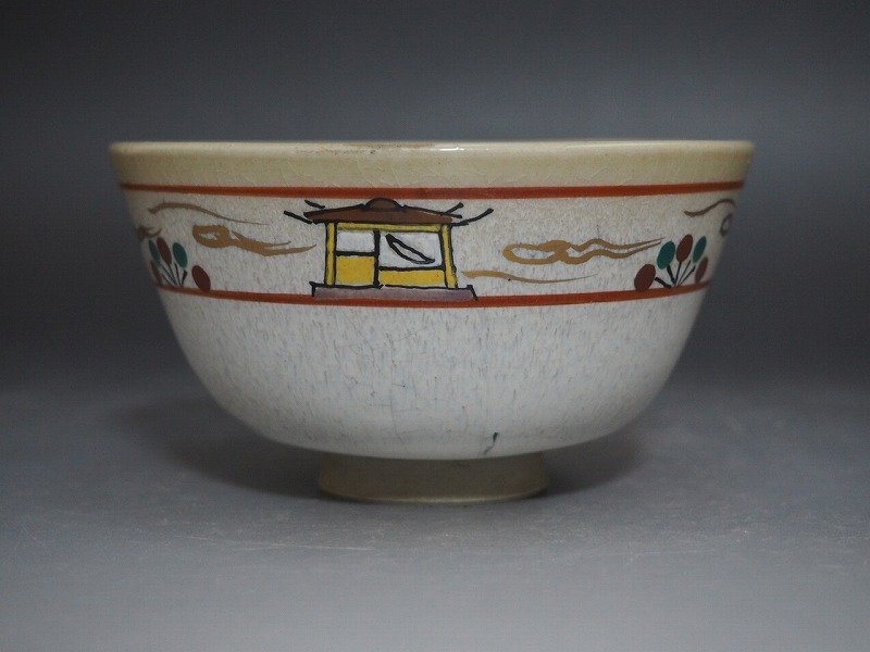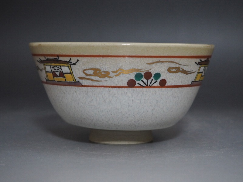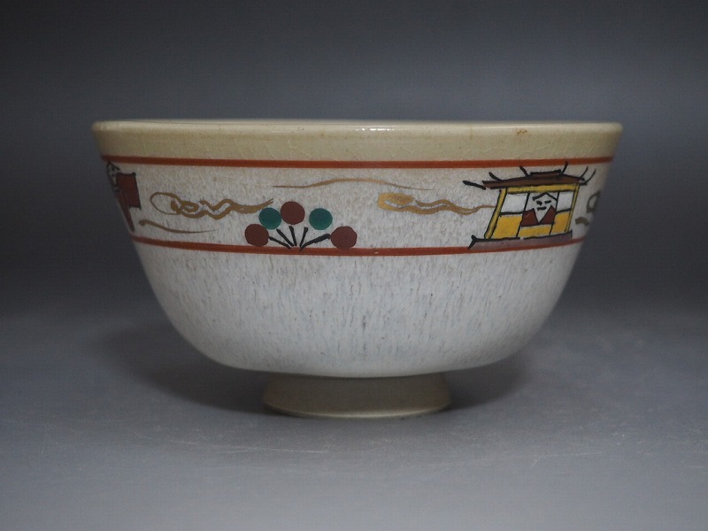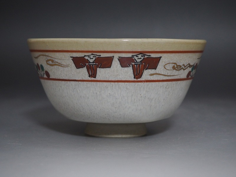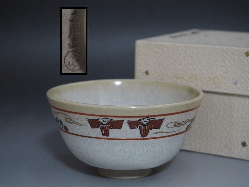 | A4245 赤膚焼 大塩昭山 作 奈良絵茶碗 紙箱付 ☆ 茶道具 抹茶器 抹茶道具 茶懐石 茶事 茶碗 抹茶碗 陶器 作家物 在銘 陶印 美品 良品 無傷 | ||