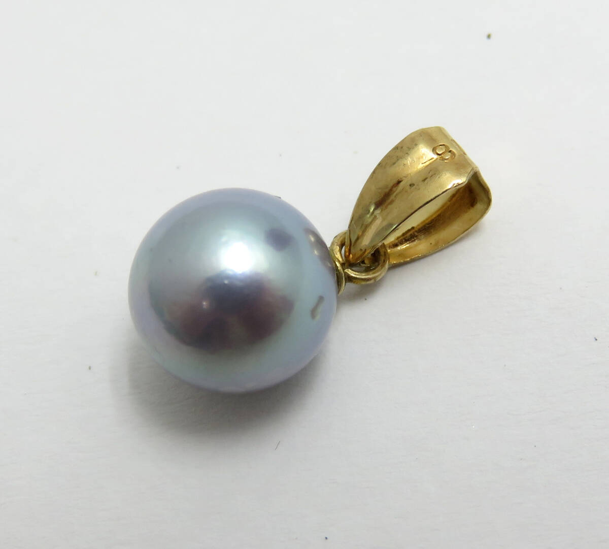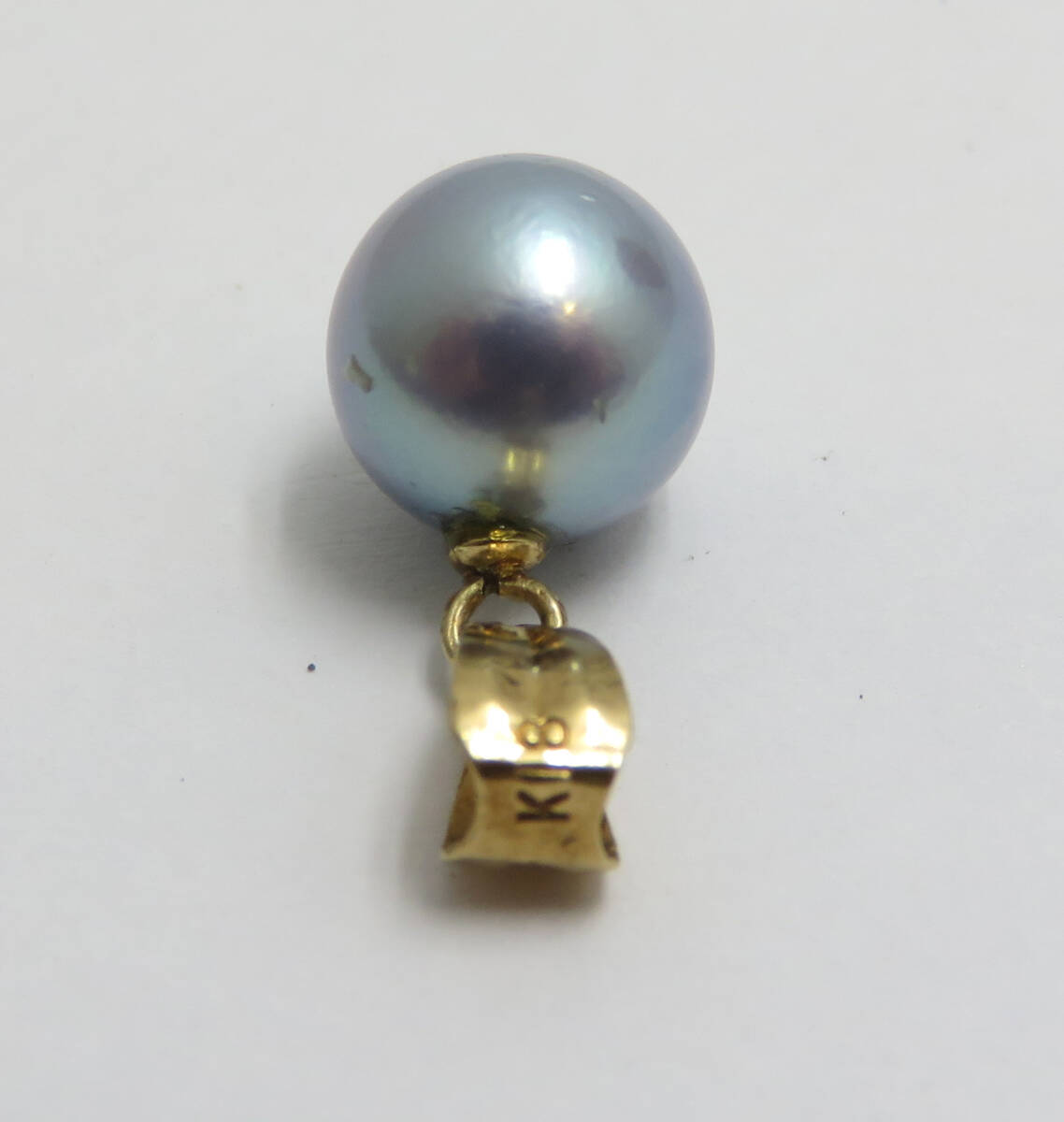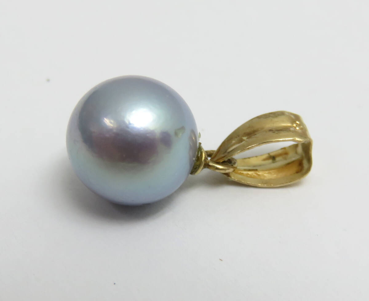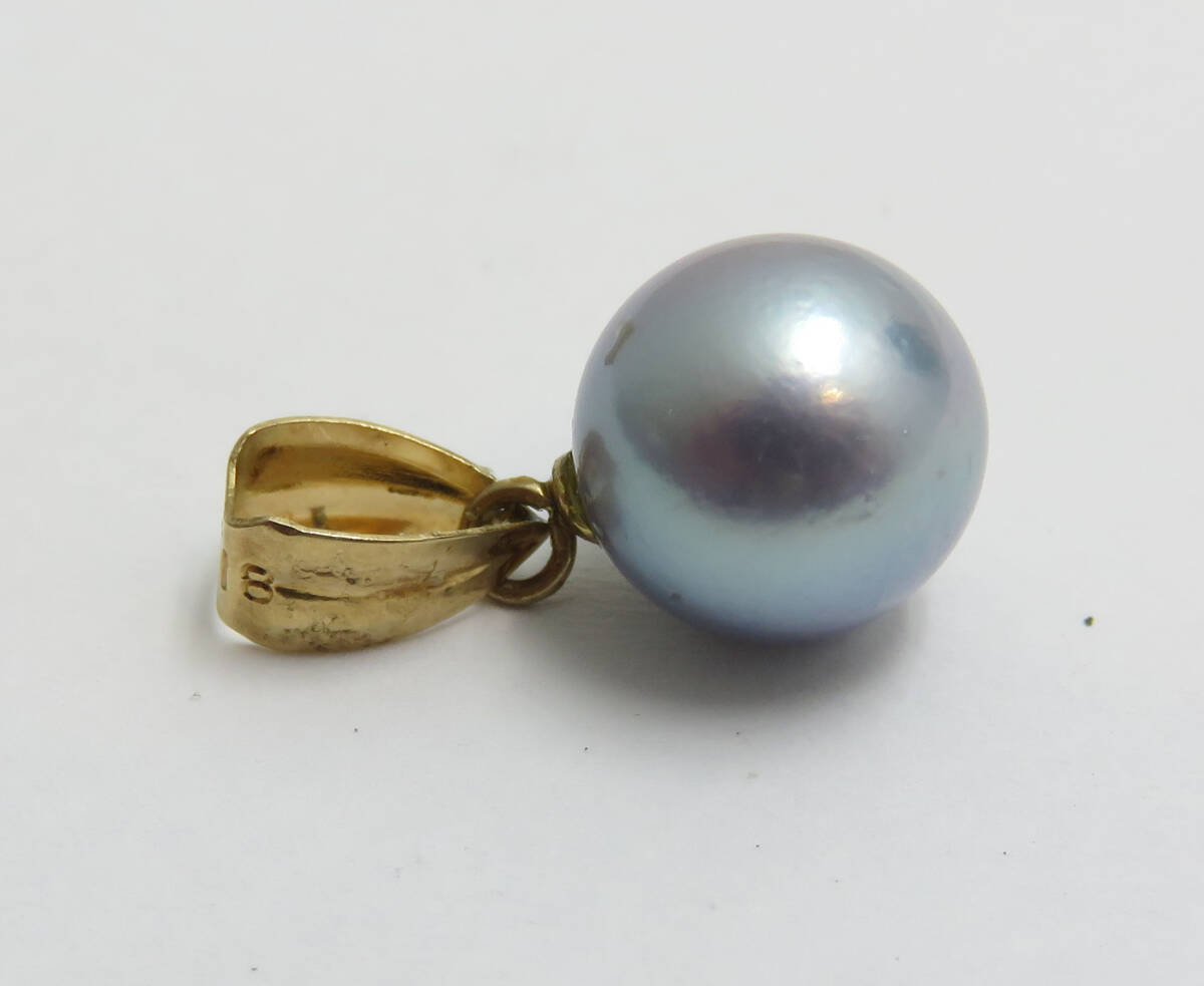 | ☆K18 パールトップ 約8.0㎜ 約0.9g ブルーグレー系 真珠 ネックレス チャーム トップ レディース アクセサリー |