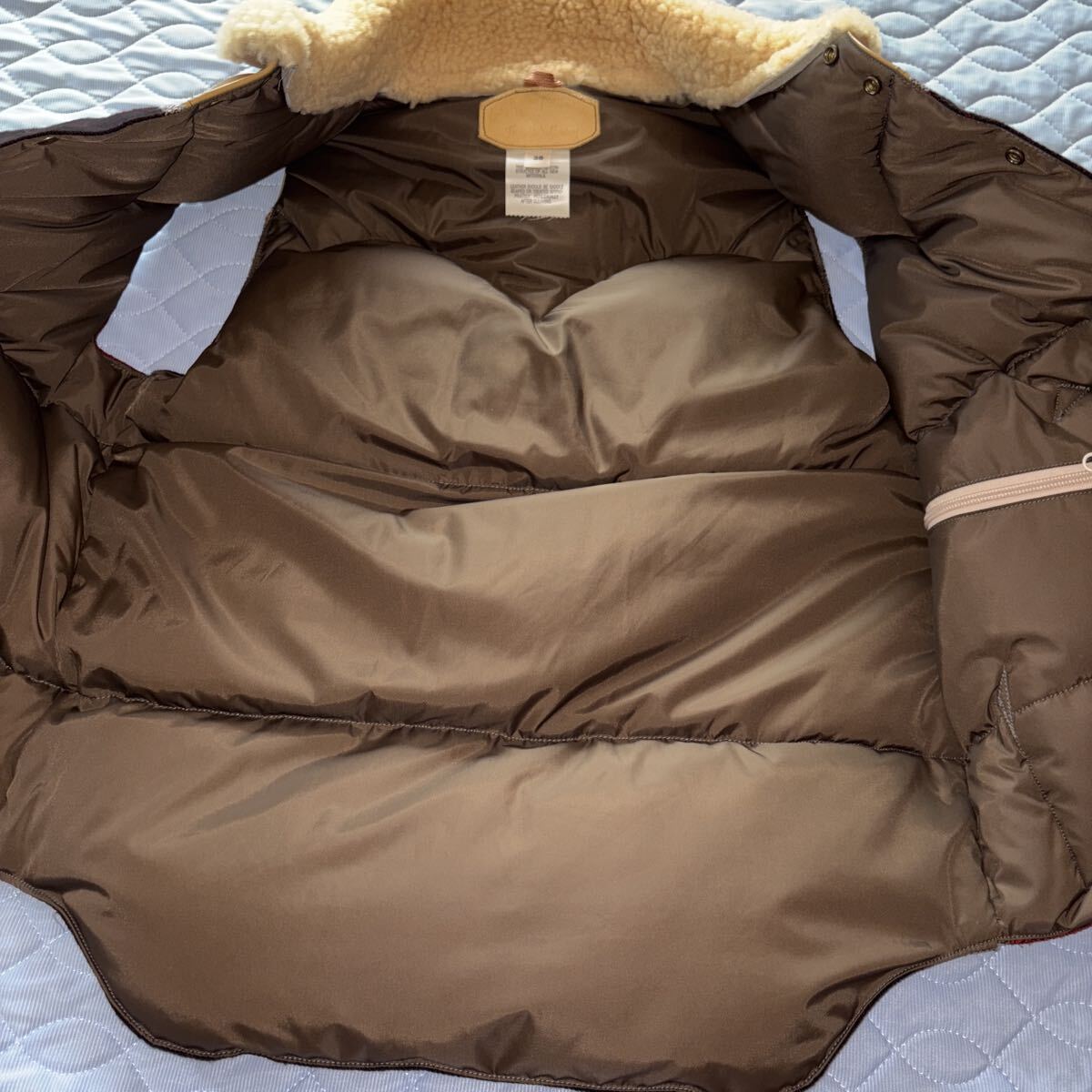 ロッキーマウンテンの定番ダウンベストです。肩周りを補強したレザーヨーク仕立てに襟はウールのボアで防寒性抜群です。生地は忘れてしまいましたが日本のブランドとのコラボです。見た目に惚れて購入しましたが結局使ってませんのでとてもきれいな状態です。探されている方よろしくお願いします。サイズは38です。肩幅39脇下53着丈64センチほどです。当方172センチ56キロ手足長めのやや痩せ型ですがちょうどいいサイズです。