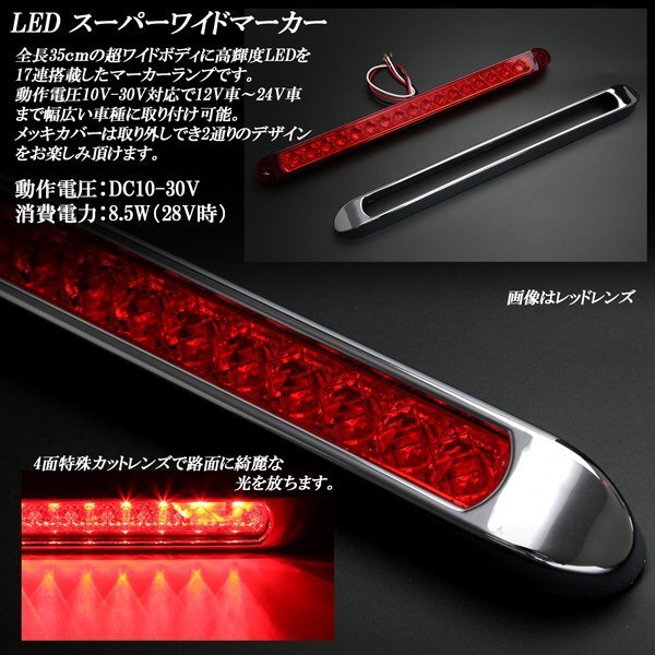 17LED スーパーワイドマーカー 動作電圧10-30V対応で12V車~24V車まで幅広い車種に取り付け可能。 メッキカバーは取り外しでき、2通りのデザインをお楽しみ頂けます。 配線の使い分けで暗点灯、明点灯の2段階発光モードを全カラーに搭載。ブレーキやウインカーと連動させるできます。 レンズ裏面にはシリコン樹脂を充填済みで水中でも点灯するほどの防水性を確保しています。 クリアレンズ、カラーレンズなど合計9種類ラインアップ。 車体の仕様に合わせてお選び下さい。 ご落札後のカラーの変更はお受けできません。必ず出品カラーをご確認下さい。 他のカラーは ⇒ こちら その他、トラック用品は ⇒ こちら |