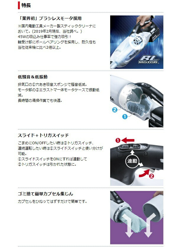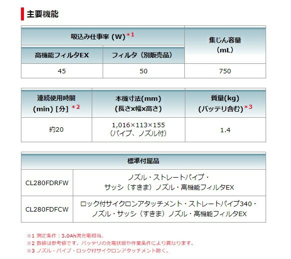 電池・充電器はその他機種のセット商品をバラシた商品です。説明書・外箱は付属しません。マキタ makita充電式クリーナーCL280FD 白バッテリBL1860B+充電器DC18WC+ロック付サイクロンアタッチメント付オリジナルセット品■「業界初」ブラシレスモータ採用■低騒音&低振動■ゴミ捨て簡単カプセル集じん■「本体内部へのゴミ侵入を防止」誤取付防止構造■パイプロックボタン■その他特長・バッテリ切れお知らせ機能付、高輝度LEDライト・高機能フィルタEX付88381891653883818804738838146403188381597593008838188047300883814640310088381597593クリーナー 掃除機 CL280FD-ZCW