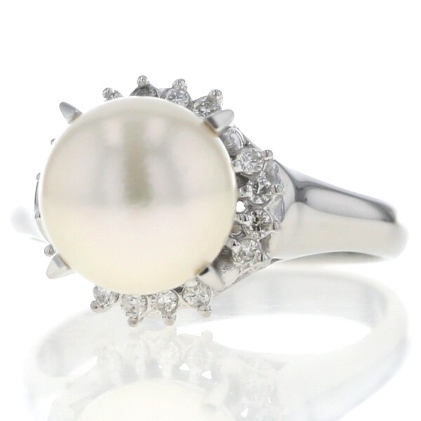 | 商品紹介 | Pt850プラチナ製のリングです。 大粒のラウンド真珠をセンターに配し、レースのような細やかな透かしデザインとダイヤモンドが上品に調和しています。 繊細な装飾が手元に華やかさと優雅さを添える、特別感のあるジュエリーです。 |
