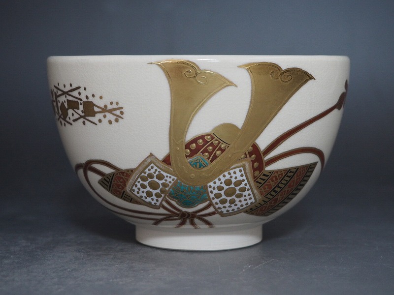 | A4479 京焼 東雲窯 造 兜文茶碗 化粧箱付 ☆ 茶道具 抹茶器 茶器 茶懐石 茶事 茶の湯 茶碗 抹茶碗 陶器 作家物 在銘 陶印 美品 良品 無傷 | ||