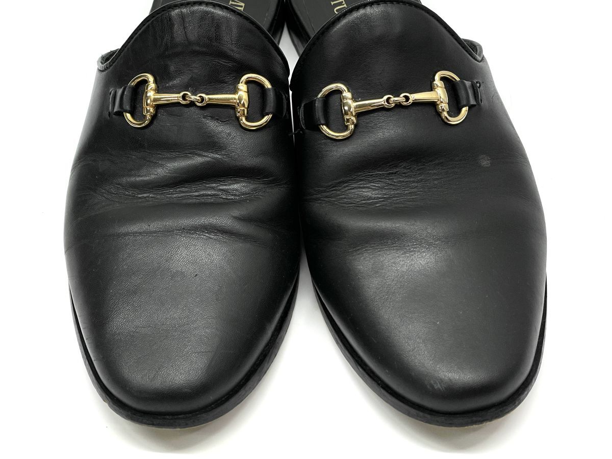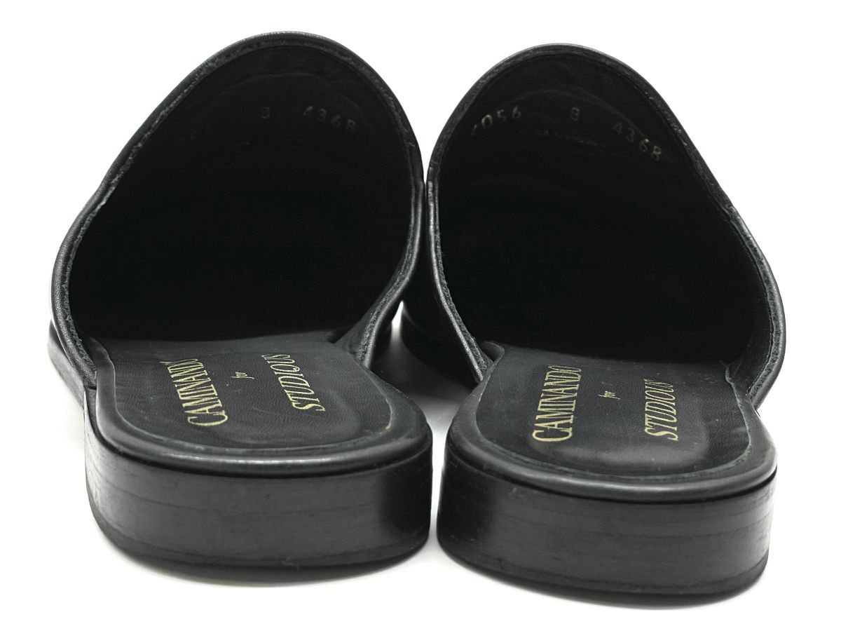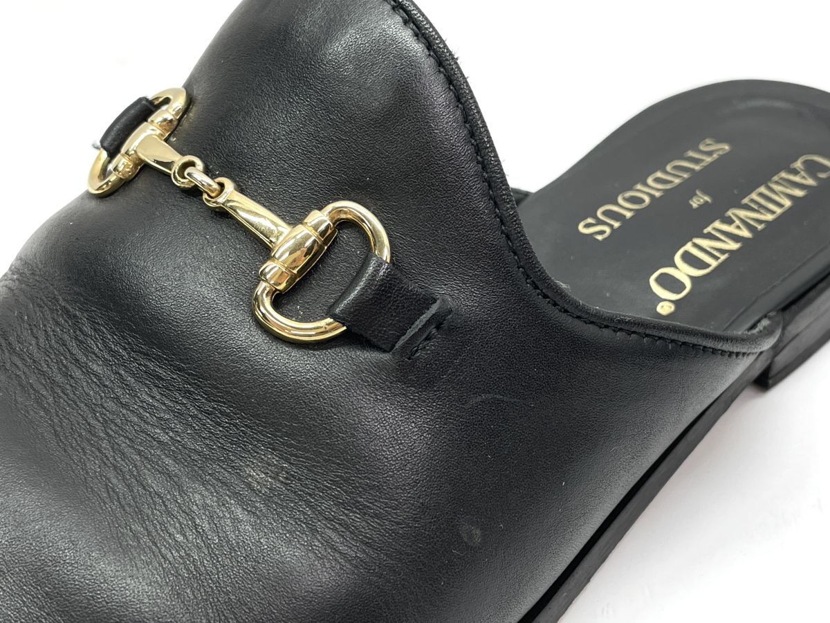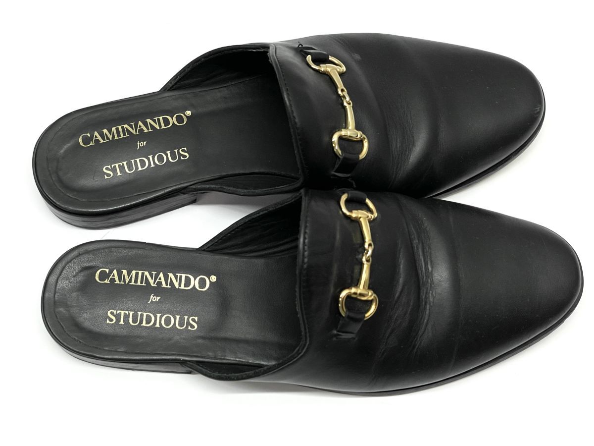 | 【R489】良品 CAMINANDO×STUDIOUS カミナンド ビットスリッパ ブラック US8/26cm程度 黒 レザー サンダル シューズ ゴールド金具 | ||