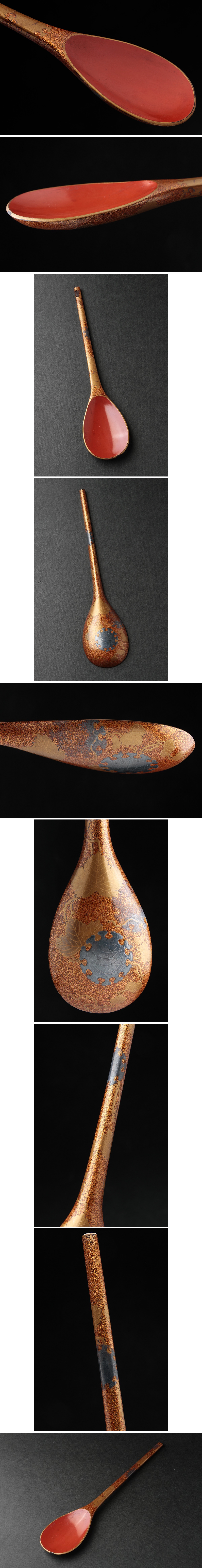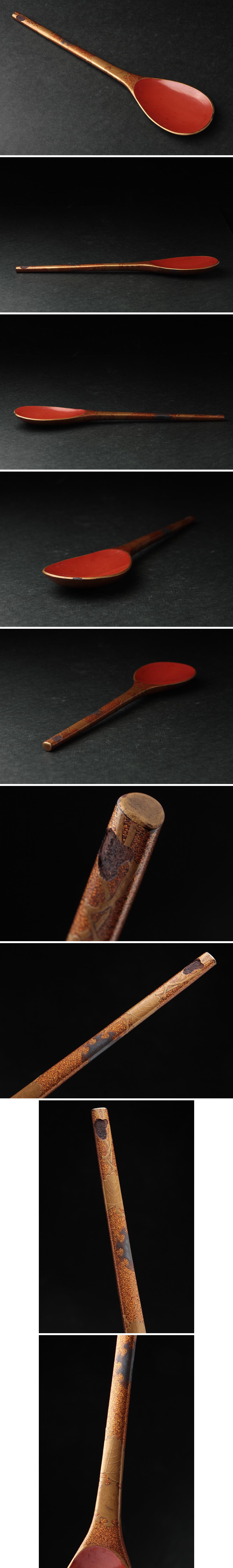 ◆ 時代蒔絵 金梨地 雪輪蔦葉 金銀蒔絵匙 全長18.5cm・蒔絵スプーン 茶道具 漆工芸 伝統工芸 古美術 ◆