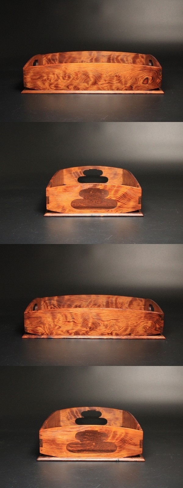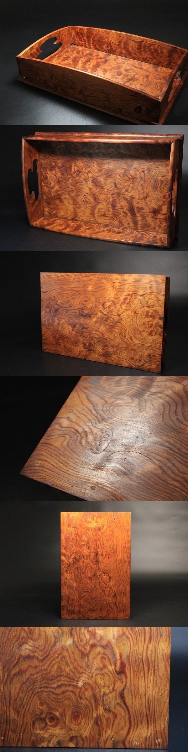 商品説明 | 状態 : 無傷 角度によって表情を変える杢目が非常に綺麗な逸品です。 莨盆にはもちろん、ほかの用途にもお使いいただけます。 中々お目に掛かれないと思いますので、この機会に是非如何でしょうか。 径 21.3cm×32.8cm 寸法 : 高さ 7.0cm 箱 : 共箱 蓋裏の桟が無くなっております。 |