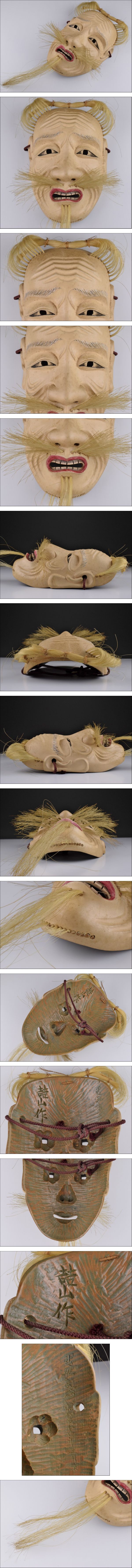 品 名:在銘 木彫 能面 神楽面 雅楽面1 寸 法:幅 20.5㎝×14.3㎝ 総重量:157g 状 態:経年による汚れ、小傷あり。 | |||