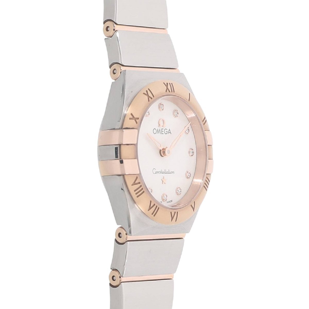 | モデルについて | オメガのアイコン的コレクションであるコンステレーションは1952年に初代モデルが誕生しました。3時と9時位置にある爪が特徴的で、発表されてから不朽のデザインコンセプトで多くの女性に愛されるオメガのドレスウォッチにおける象徴的モデルです。5世代目にあたりマンハッタンと名づけられたコンステレーションで、ケースの両サイドにある爪がスリム化されるなど、よりモダンな印象へとアップデートされました。インデックスの12か所にはダイヤモンドがセッティングされておりエレガントさが際立っております。 |