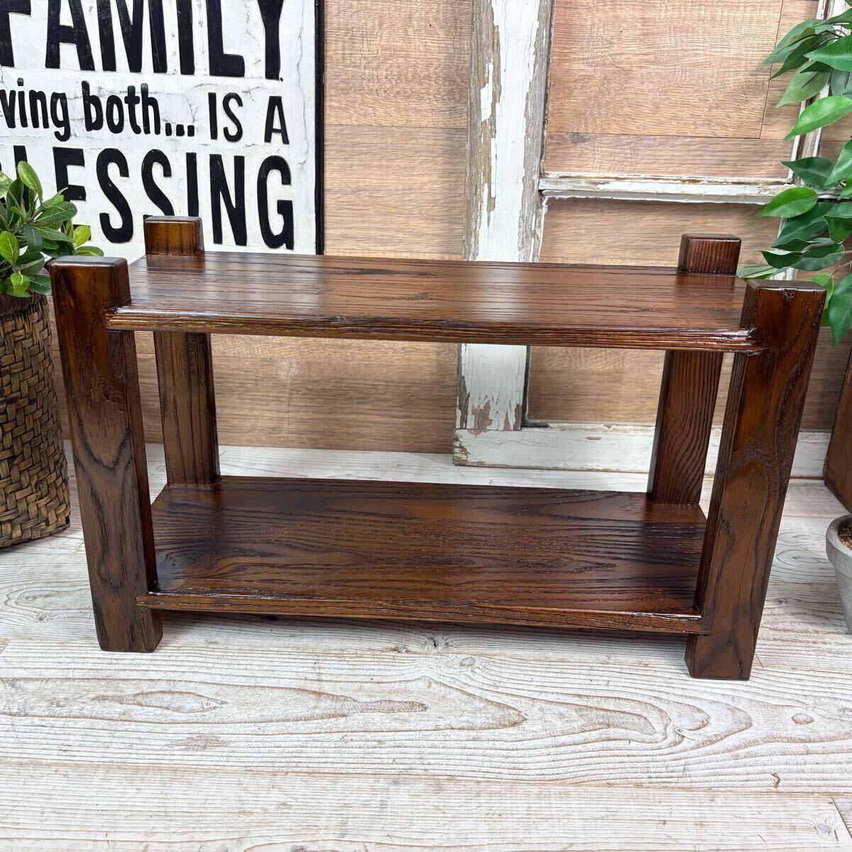 | ◆◇商品詳細◇◆ マルチラック二段☆ 材質は天然木ニレ材無垢使用で、木目が美しく光沢のある仕上がりになっております。安定感のある頑丈な作りです。釘ビス等を一切使ってないお品なので安心してお使いいただけます。アジアンエスニックテイストや洋室、和室などどんなお部屋にも合わせやすいですよ!調味料棚、キッチン収納ラックや子ども部屋収納、ガーデニングの花台、お部屋の飾り棚としてもお使いいただけます!組み立て不要ですぐにお使いいただけます。大人気商品再入荷になりました!ぜひこの機会に♪ 【商品状態説明】 少々の色むらあり、まずまずの美品。 完成品になります。 【サイズ】 横幅:50㎝ 奥行:21㎝ 高さ:30㎝ 内寸(収納域)横41㎝ 奥行21㎝ 高さ20㎝ 【素材】 ウッド 【カラー】 ブラウン 【参考価格】 ¥7,000 | ◆◇発送方法◇◆ ●送料は基本無料ですが、沖縄・離島などにお住まいの方はご負担ください。 (沖縄・離島の方はメールにてご連絡いただければ、送料をお知らせいたします。) ●ヤマト運輸・佐川急便・第一貨物のいずれかにて配送いたします。 (運送会社の指定はできません。ご了承ください。) ●日時・時間指定のある方や、お問い合わせ(追跡)番号をご希望の方は取引連絡の際にお知らせください。 | |