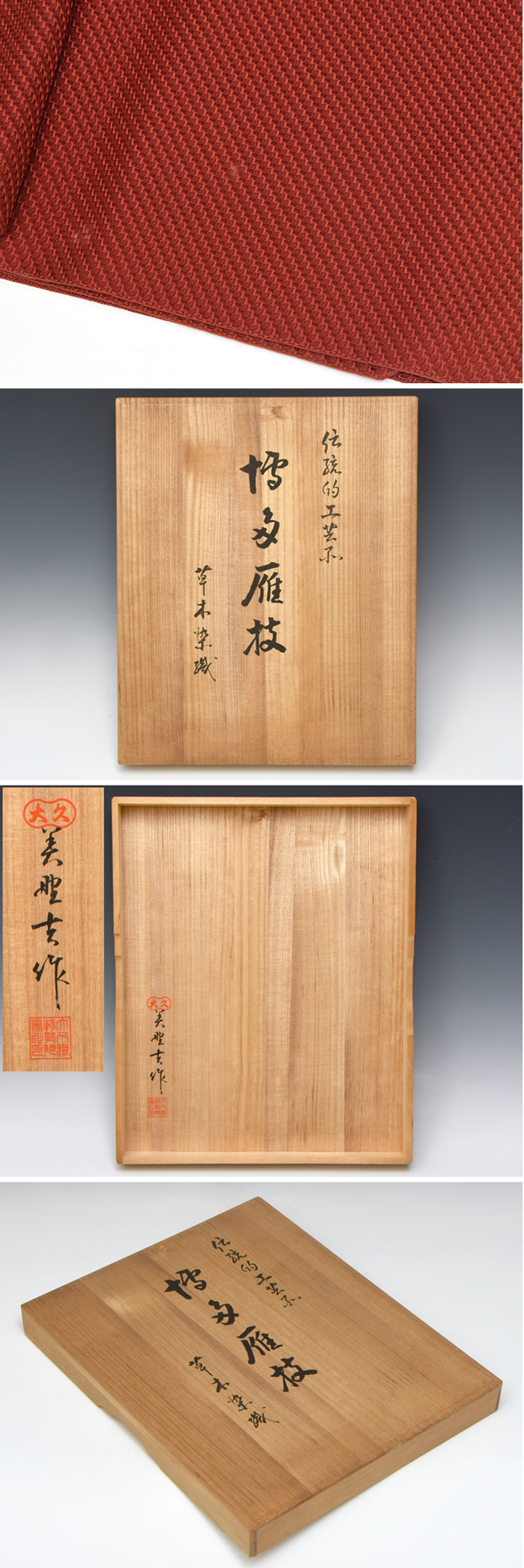 大久織物謹製 博多雁技 美野吉 (作)草木染織 名古屋帯 茜染 桐箱 本場筑前博多織 桐箱 和装具 和装小物 着物 浴衣 着物帯 |