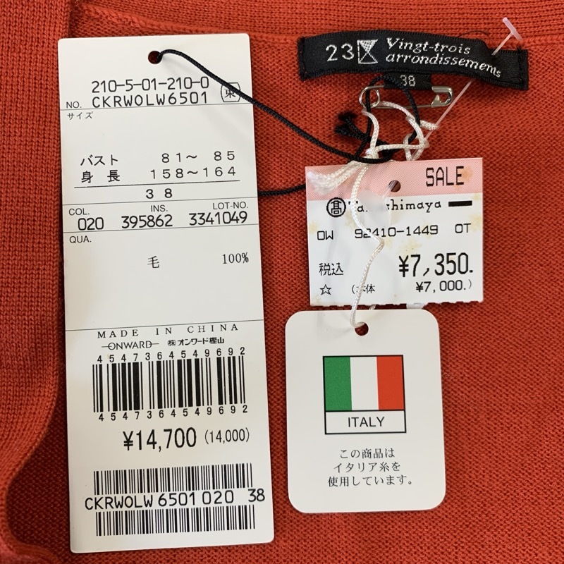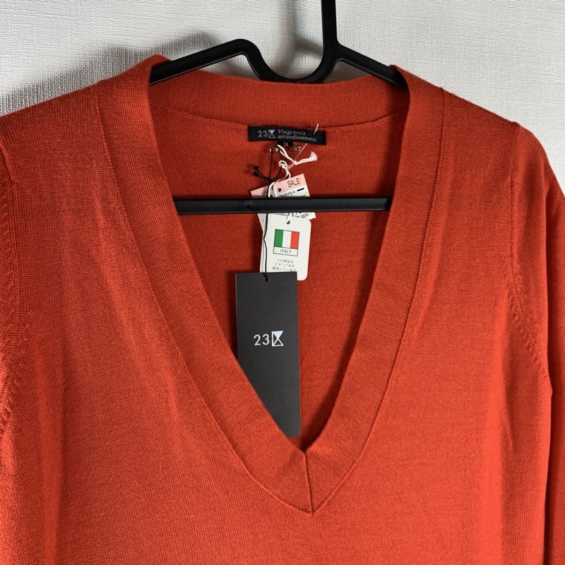 | 商品名 | ニジュウサンク 23区 Vingt-trois arrondissements ニット Vネック 長袖 ウール100% オレンジ 赤系 38サイズ 915024 |