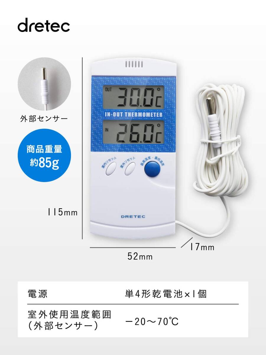 「室内室外温度計 O-209BL」は、室内と室外の温度を同時に表示。ガーデニング、水槽、冷蔵庫の温度管理などに便利な室内室外温度計です。冷蔵庫のドアなどへの取り付けに便利なマグネットと、立てて使えるスタンド、さらに、壁掛け用フック穴が付いています。室内表示温度範囲:マイナス10度から50度。室外表示温度範囲:マイナス50度から70度。電池付(単3形乾電池*1個)。