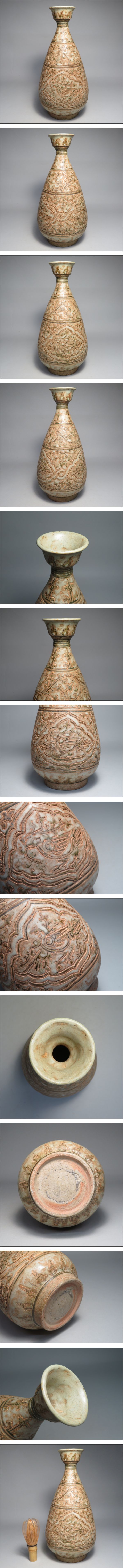 | 「都内コレクター所蔵品」タイ スンコロク 宋胡録 白褐釉花鳥文瓶 花瓶 タイ スワンカローク窯 東南アジア古陶器 | |||