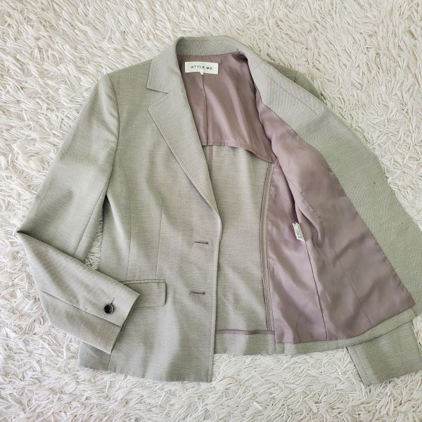 グレージュカラーが上品で、オフィスカジュアルやお出かけ、ちょっとした羽織りにも最適な一枚です。