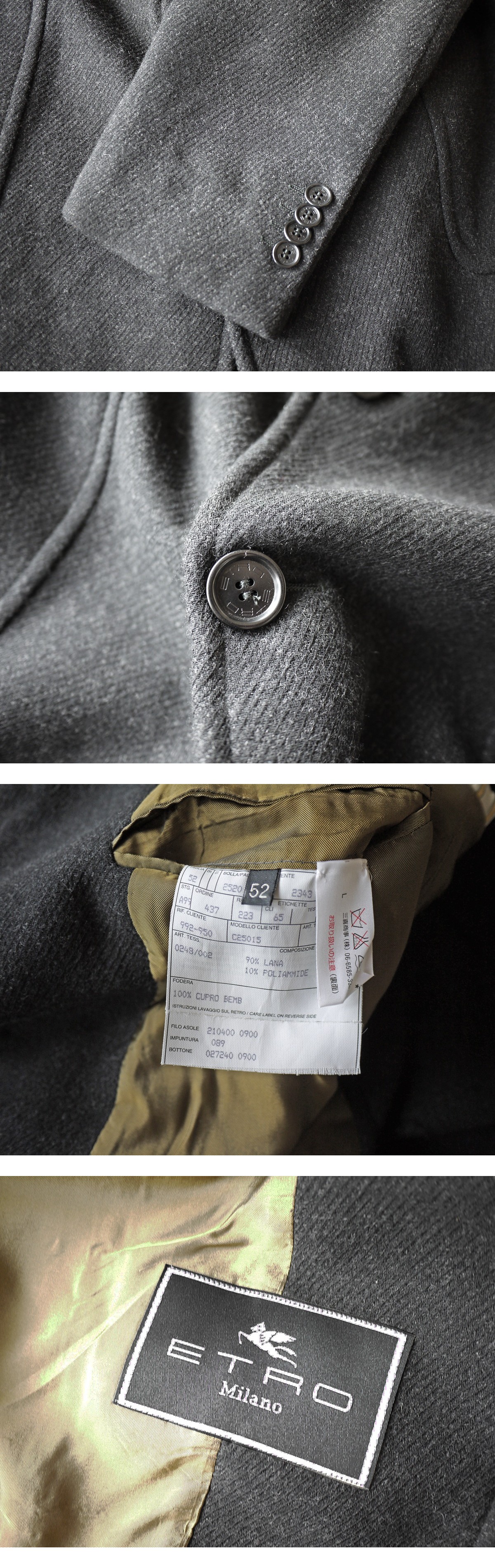 brand ETRO made in Italy price \225,000(参考上代) material wool 90% polyamide 10% color charcoal gray サイズ 52 肩幅46 着丈98 袖丈67 身幅54(多少の誤差はご了承ください。) 状態 比較的使用感の少ないきれいなお品物です。特筆すべきダメージは見受けられず末永くご使用頂ける状態です。 |